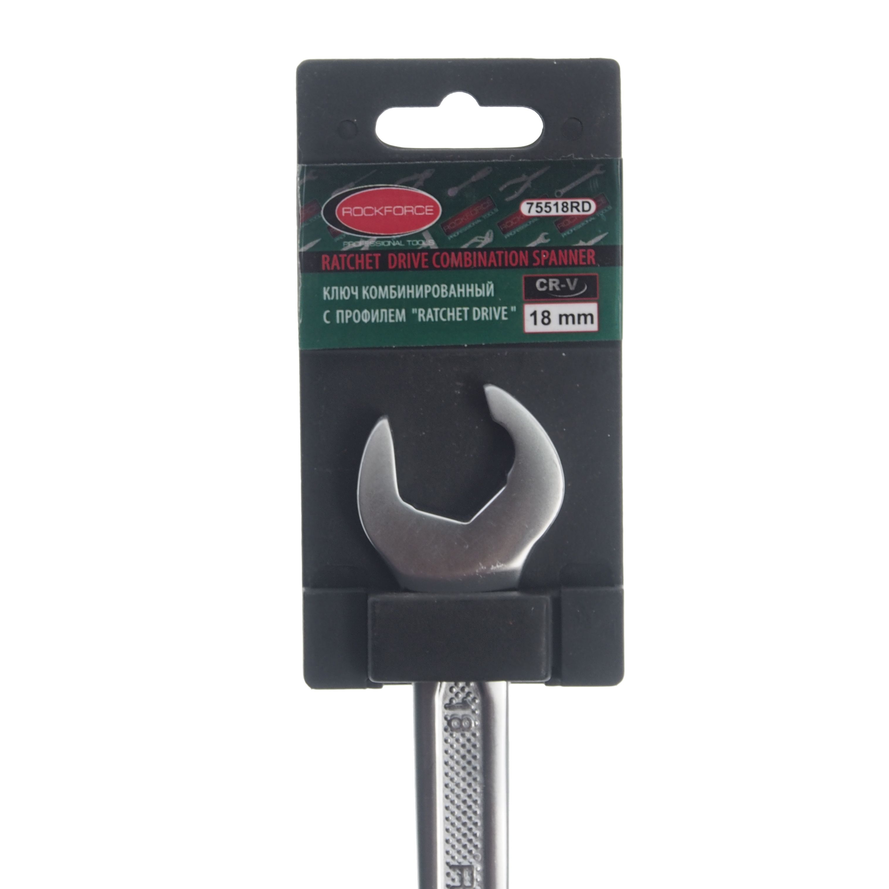Ключ комбинированный с профилем «Ratchet drive» 18мм, на пластиковом держателе удобный и компактный инструмент, который пригодиться в гараже, быту или автомастерской. Хромованадиевая сталь обеспечивает стойкость инструмента к высоким нагрузкам, и увеличивает срок эксплуатации. Накидная головка ключа, имеет лучший охват, поэтому ее будет выгодно использовать для крепежа из мягких металлов.