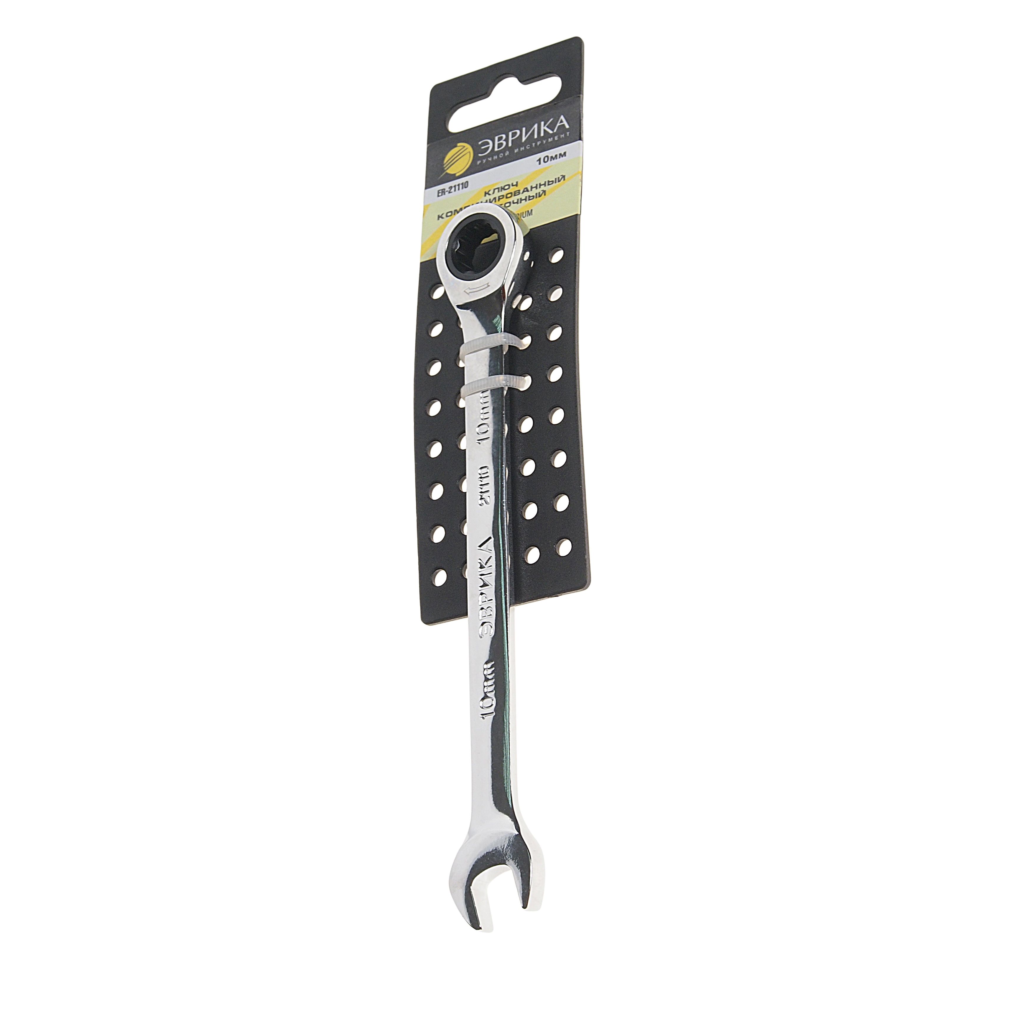 Комбинированный трещоточный ключ 10мм на держателе ЭВРИКА ER-21110H