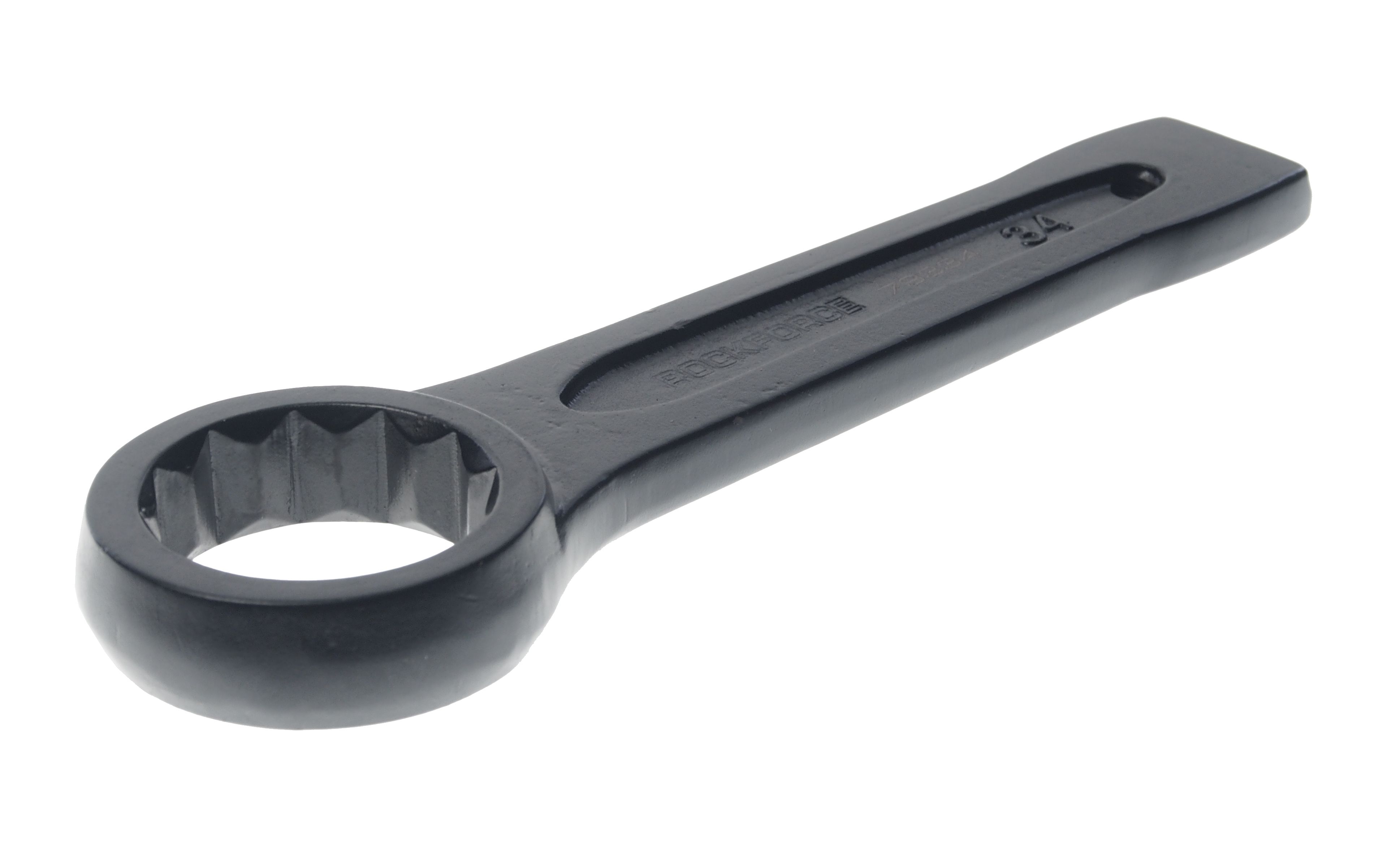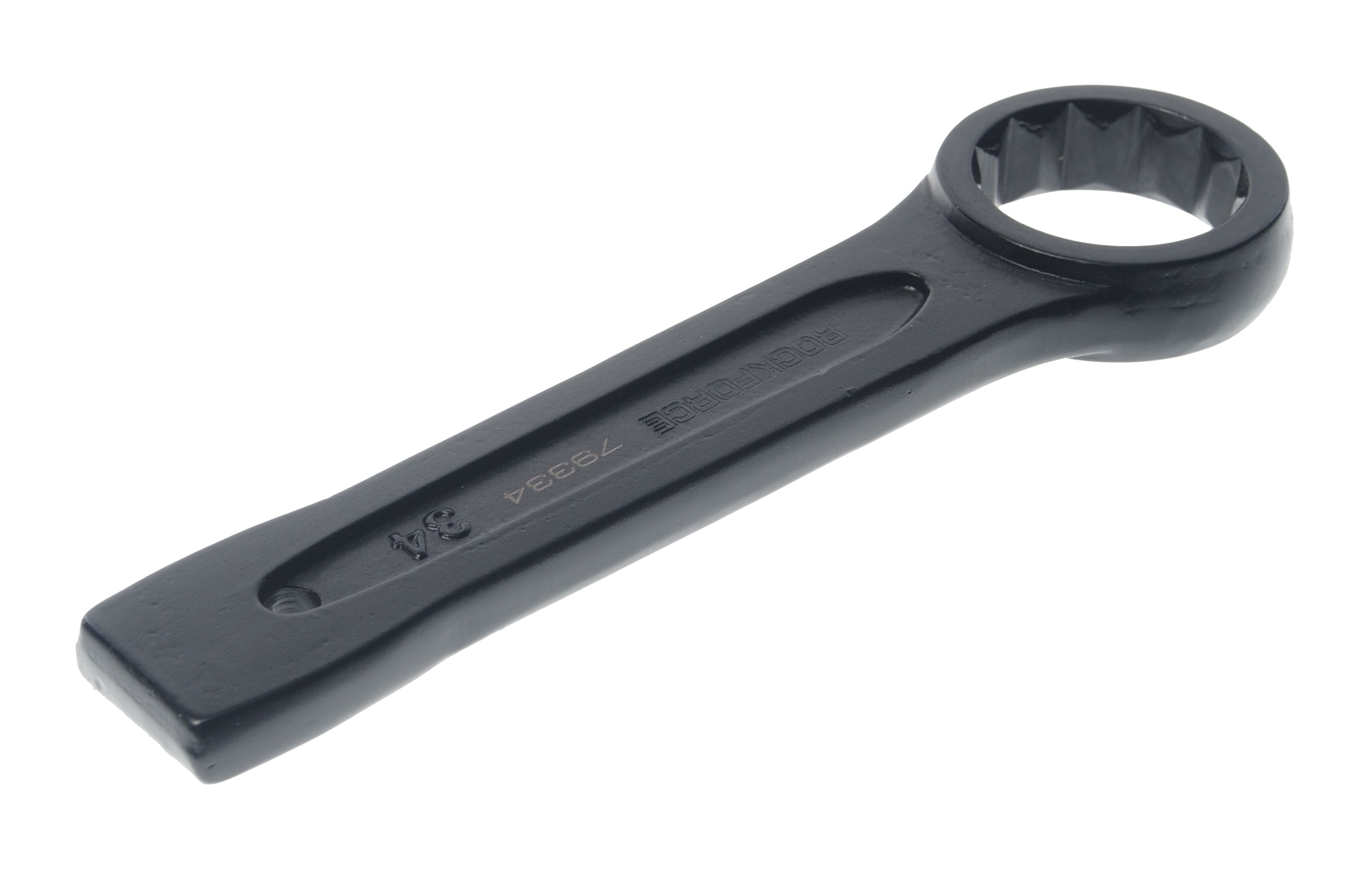 Ключ накидной RockForce ударный односторонний 34мм (L-190мм) Комплект ключей для работы с резьбовыми соединениями. Набор состоит из рожково-накидных ключей, с динамическим профилем, ключи установлены в полотно или пластиковом держателе. Рожковый профиль имеет 15-ти градусный угол, и такой же угол отгиба у накидного кольца, что упрощает работу с элементами в труднодоступных местах. Выполнен из высокопрочной хром-ванадиевой стали со специальной термообработкой.
