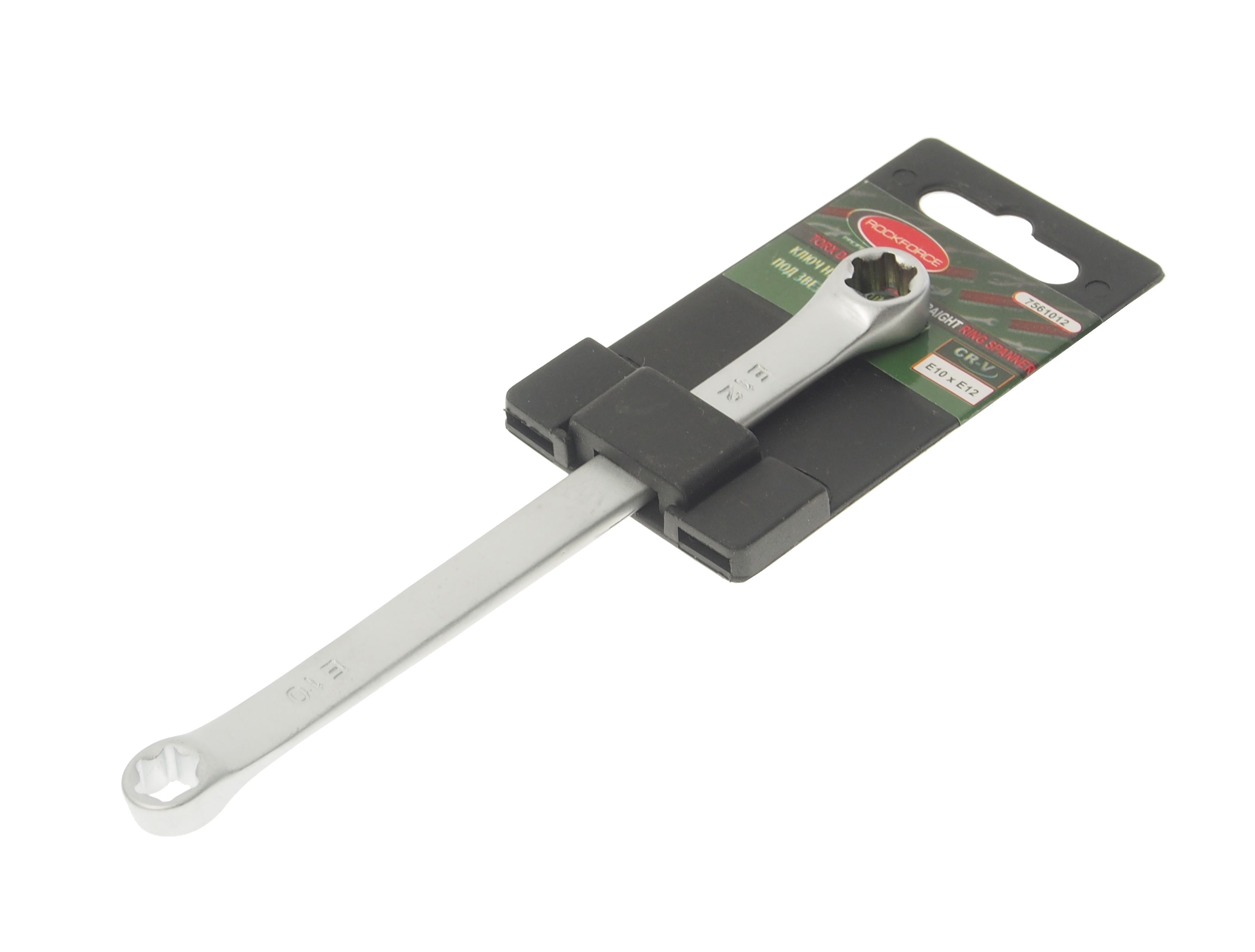 Ключ RockForce накидной Е-профиль Е10хЕ12, на пластиковом держателе Комплект ключей для работы с резьбовыми соединениями. Набор состоит из рожково-накидных ключей, с динамическим профилем, ключи установлены в полотно или пластиковом держателе. Рожковый профиль имеет 15-ти градусный угол, и такой же угол отгиба у накидного кольца, что упрощает работу с элементами в труднодоступных местах. Выполнен из высокопрочной хром-ванадиевой стали со специальной термообработкой.