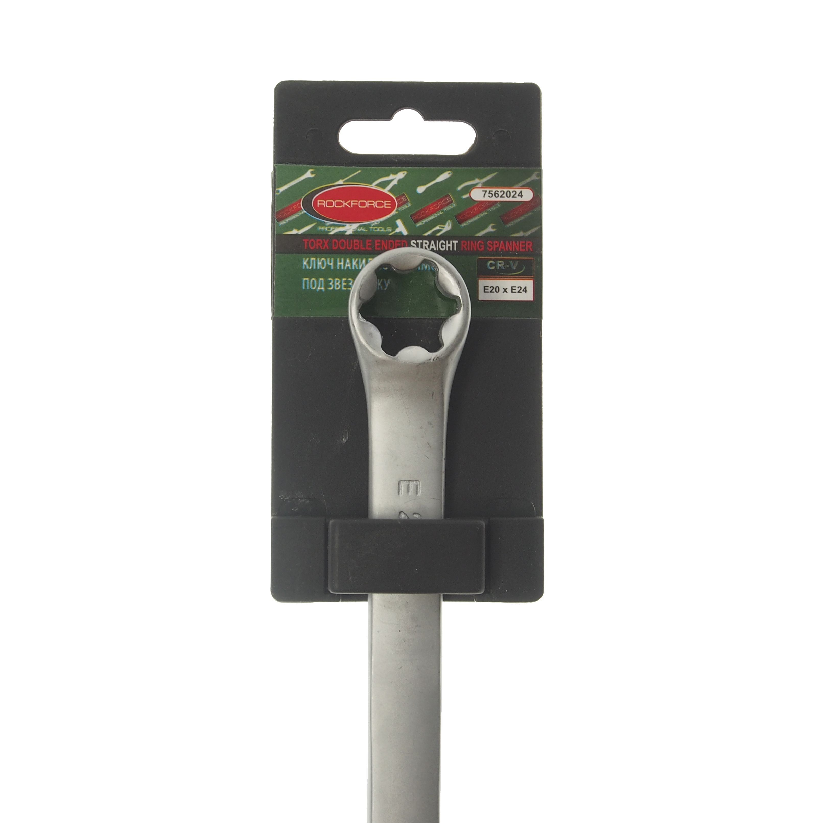 Ключ RockForce накидной Е-профиль Е20хЕ24, на пластиковом держателе Комплект ключей для работы с резьбовыми соединениями. Набор состоит из рожково-накидных ключей, с динамическим профилем, ключи установлены в полотно или пластиковом держателе. Рожковый профиль имеет 15-ти градусный угол, и такой же угол отгиба у накидного кольца, что упрощает работу с элементами в труднодоступных местах. Выполнен из высокопрочной хром-ванадиевой стали со специальной термообработкой.