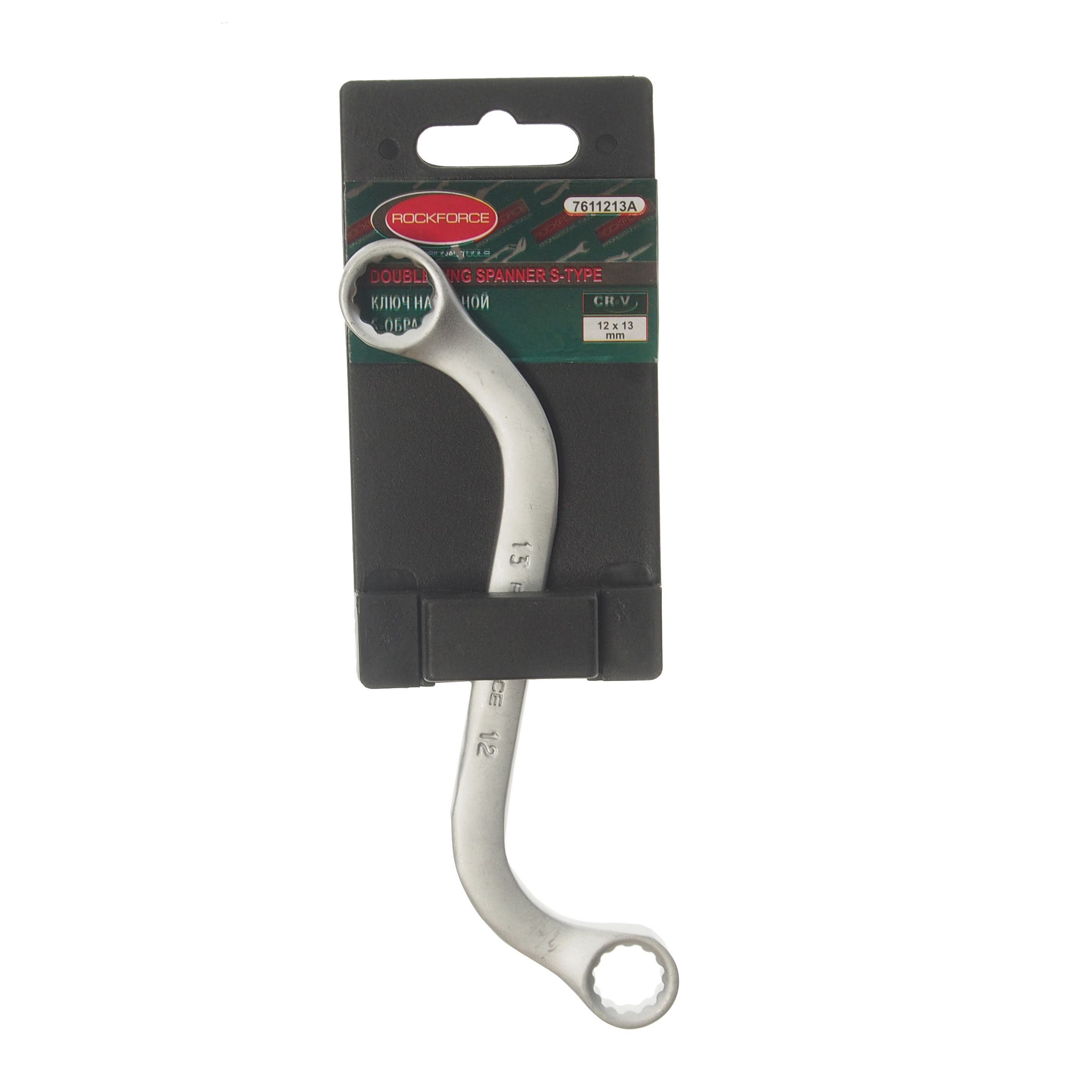 Ключ RockForce накидной S-образный 12×13мм, на пластиковом держателе Комплект ключей для работы с резьбовыми соединениями. Набор состоит из рожково-накидных ключей, с динамическим профилем, ключи установлены в полотно или пластиковом держателе. Рожковый профиль имеет 15-ти градусный угол, и такой же угол отгиба у накидного кольца, что упрощает работу с элементами в труднодоступных местах. Выполнен из высокопрочной хром-ванадиевой стали со специальной термообработкой.