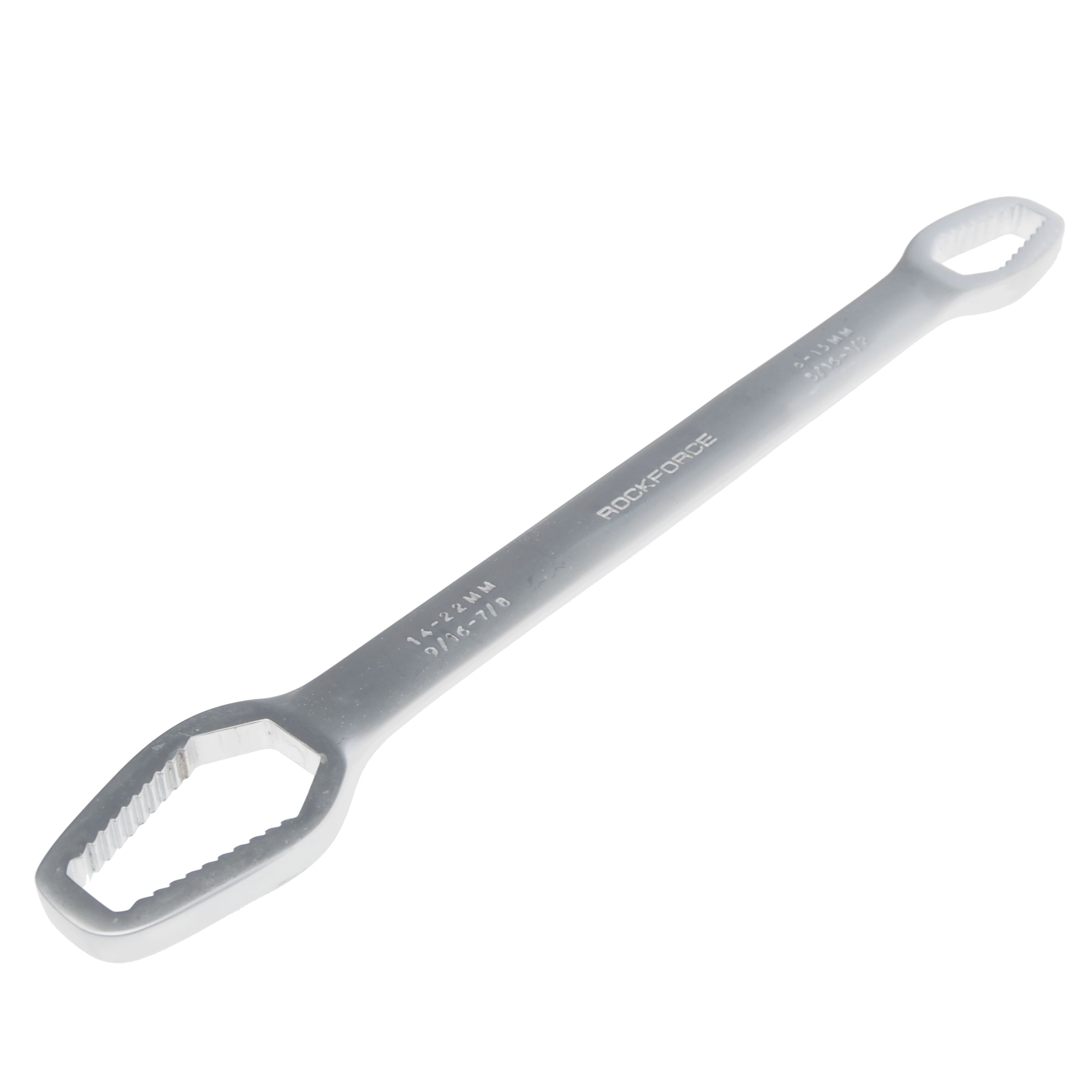 Ключ RockForce накидной "Multi"(8-13мм, 14-22мм), Комплект ключей для работы с резьбовыми соединениями. Набор состоит из рожково-накидных ключей, с динамическим профилем, ключи установлены в полотно или пластиковом держателе. Рожковый профиль имеет 15-ти градусный угол, и такой же угол отгиба у накидного кольца, что упрощает работу с элементами в труднодоступных местах. Выполнен из высокопрочной хром-ванадиевой стали со специальной термообработкой.