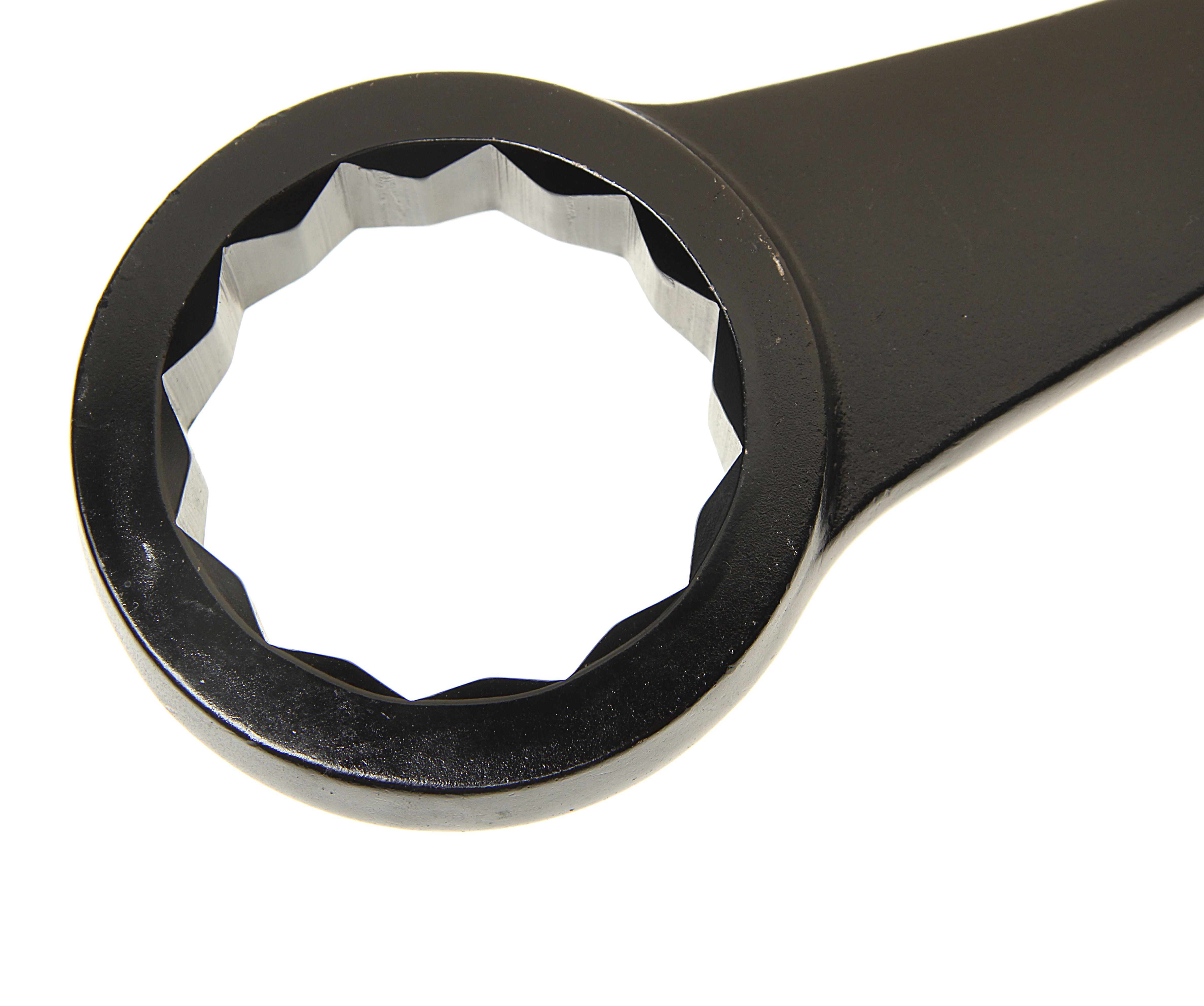 Ключ накидной RockForce ударный односторонний удлиненный 65мм (L-395мм) Комплект ключей для работы с резьбовыми соединениями. Набор состоит из рожково-накидных ключей, с динамическим профилем, ключи установлены в полотно или пластиковом держателе. Рожковый профиль имеет 15-ти градусный угол, и такой же угол отгиба у накидного кольца, что упрощает работу с элементами в труднодоступных местах. Выполнен из высокопрочной хром-ванадиевой стали со специальной термообработкой.