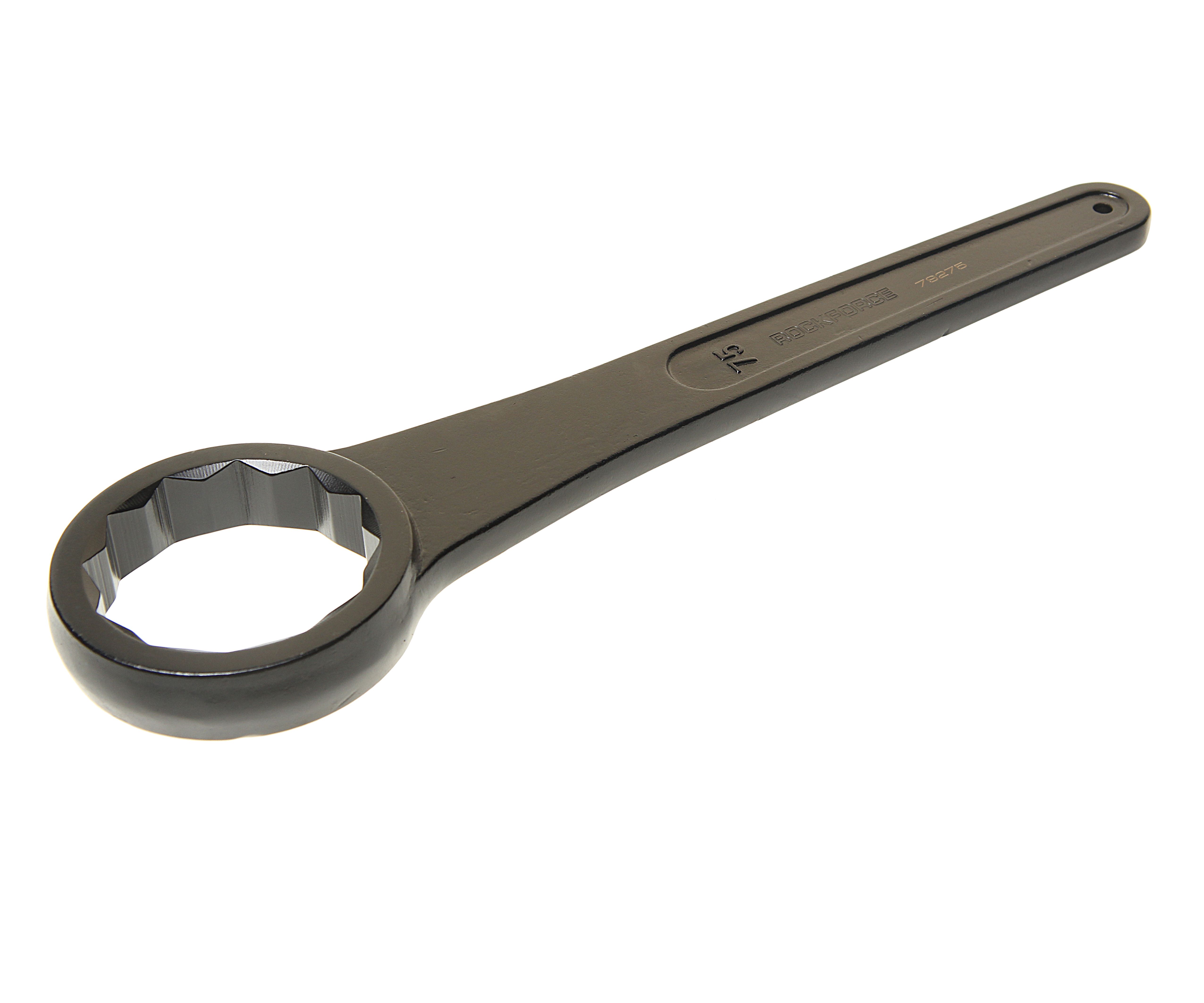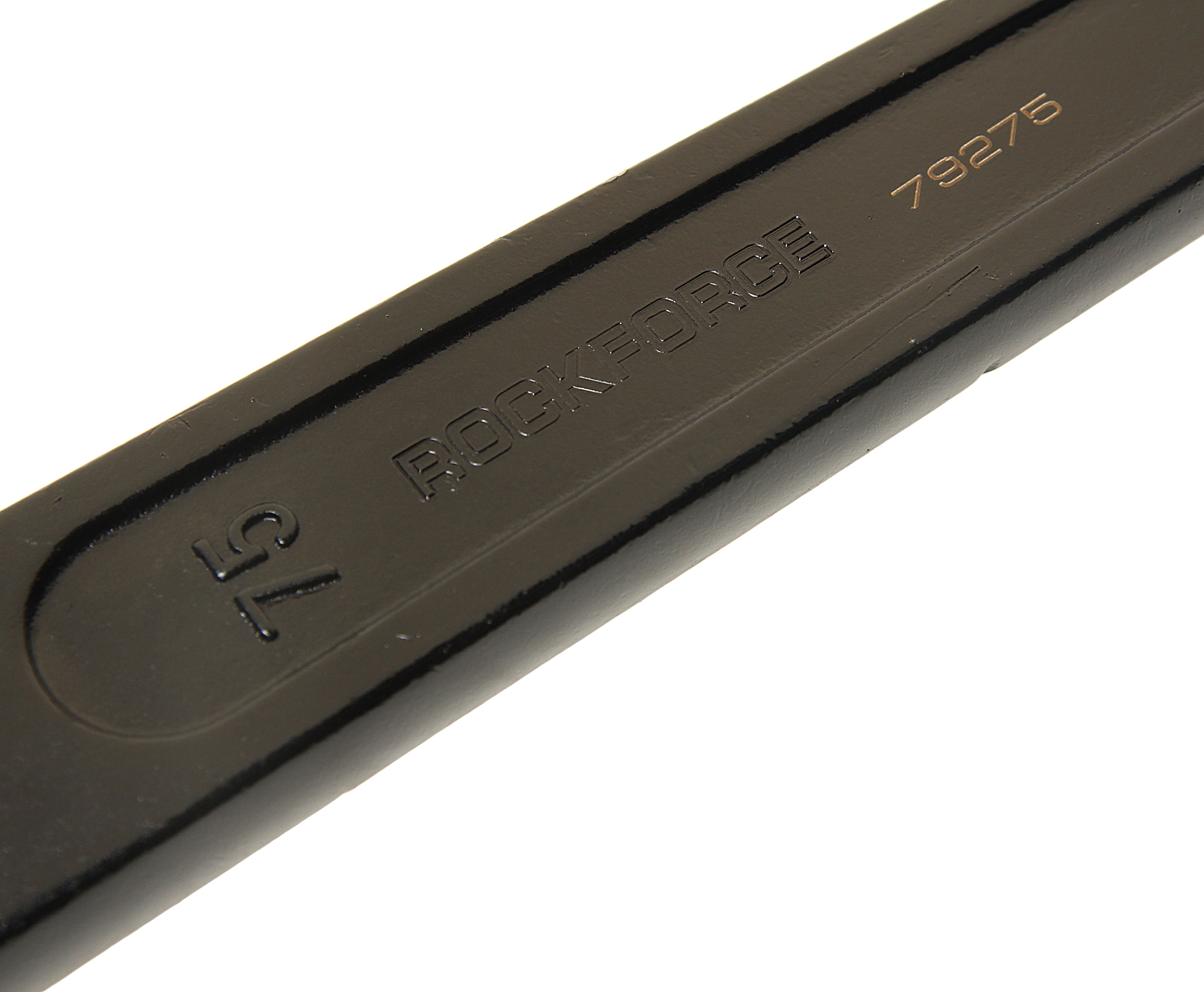 Ключ накидной RockForce ударный односторонний удлиненный 75мм (L-415мм) Комплект ключей для работы с резьбовыми соединениями. Набор состоит из рожково-накидных ключей, с динамическим профилем, ключи установлены в полотно или пластиковом держателе. Рожковый профиль имеет 15-ти градусный угол, и такой же угол отгиба у накидного кольца, что упрощает работу с элементами в труднодоступных местах. Выполнен из высокопрочной хром-ванадиевой стали со специальной термообработкой.