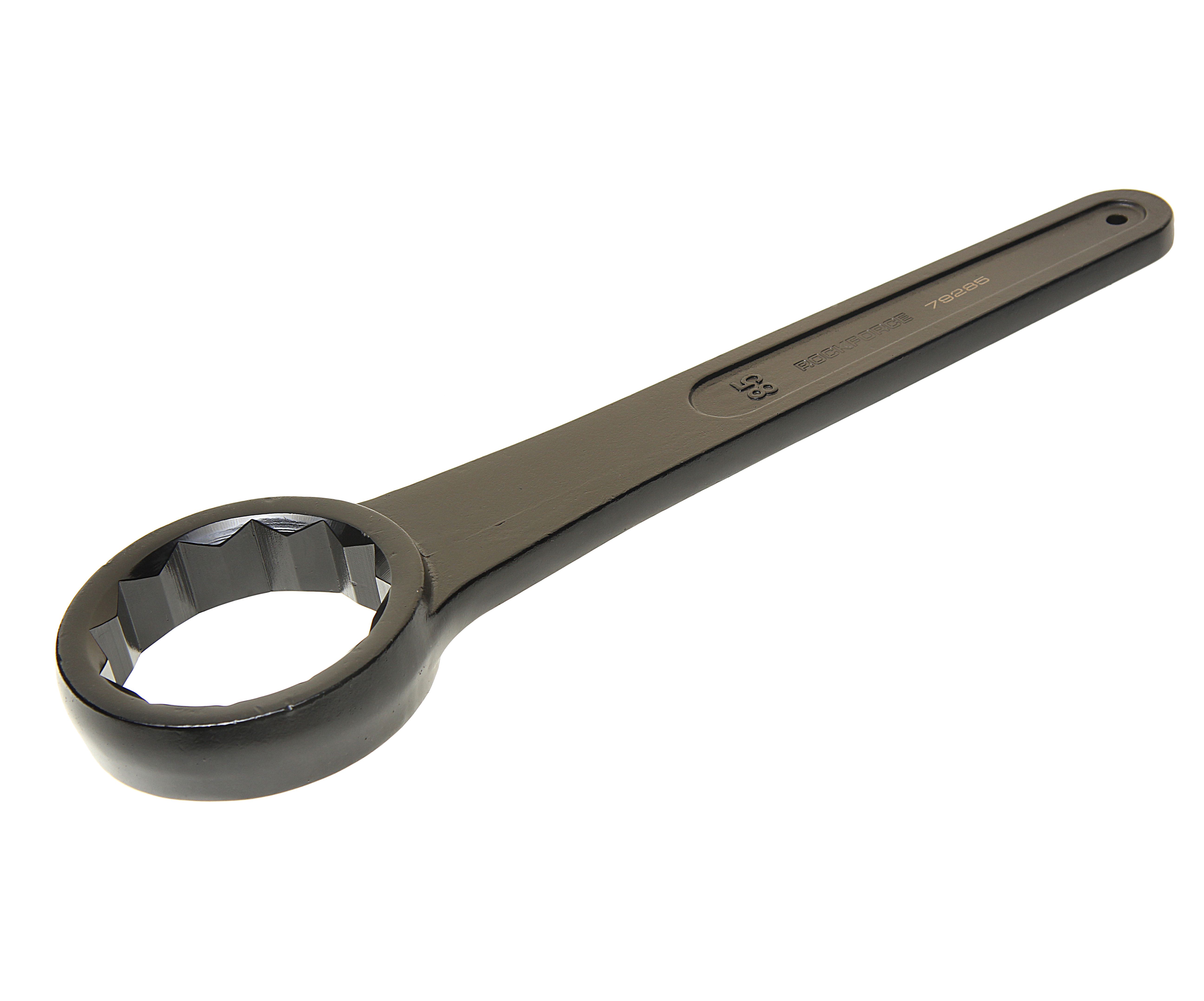 Ключ накидной RockForce ударный односторонний удлиненный 85мм (L-455мм) Комплект ключей для работы с резьбовыми соединениями. Набор состоит из рожково-накидных ключей, с динамическим профилем, ключи установлены в полотно или пластиковом держателе. Рожковый профиль имеет 15-ти градусный угол, и такой же угол отгиба у накидного кольца, что упрощает работу с элементами в труднодоступных местах. Выполнен из высокопрочной хром-ванадиевой стали со специальной термообработкой.