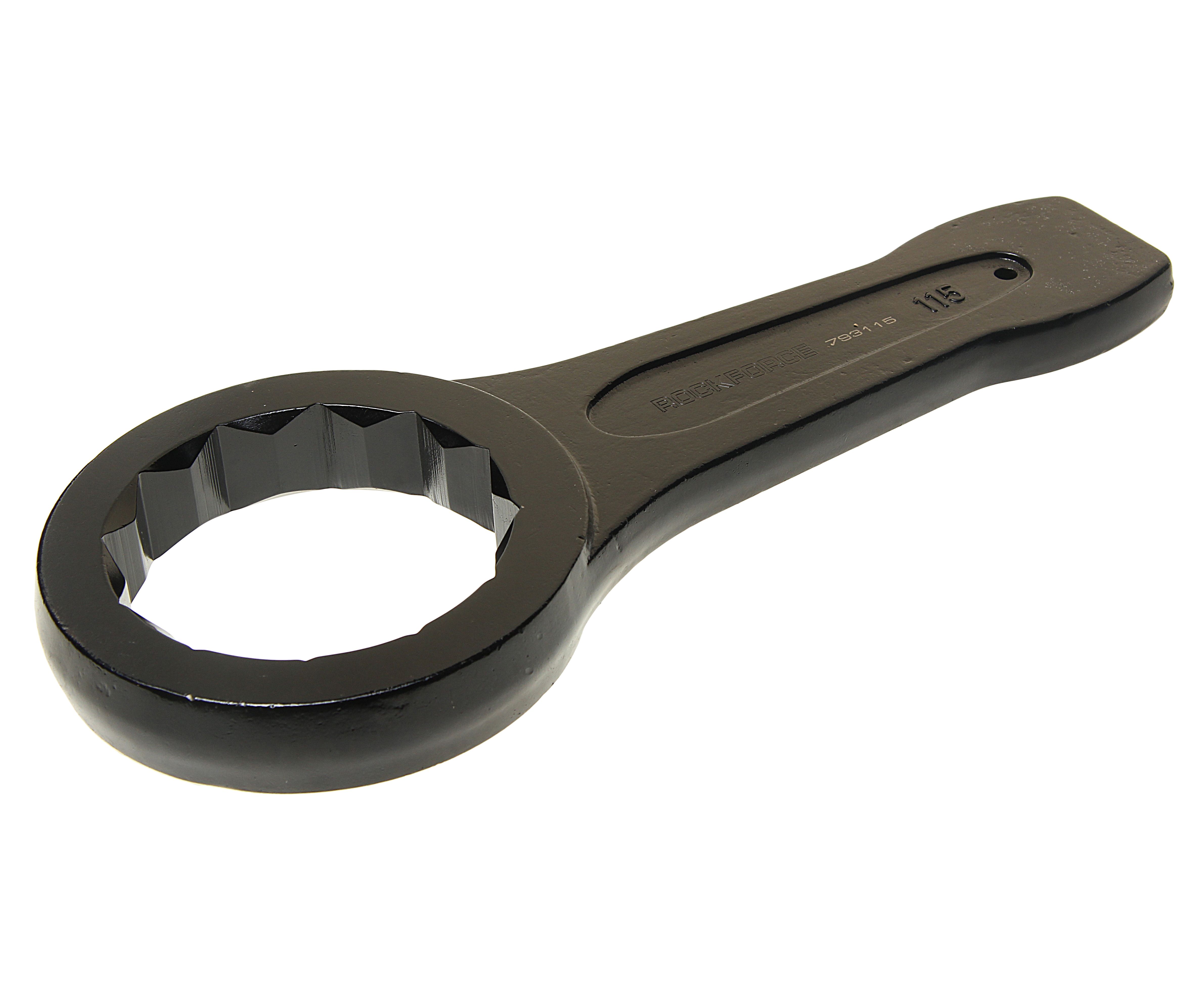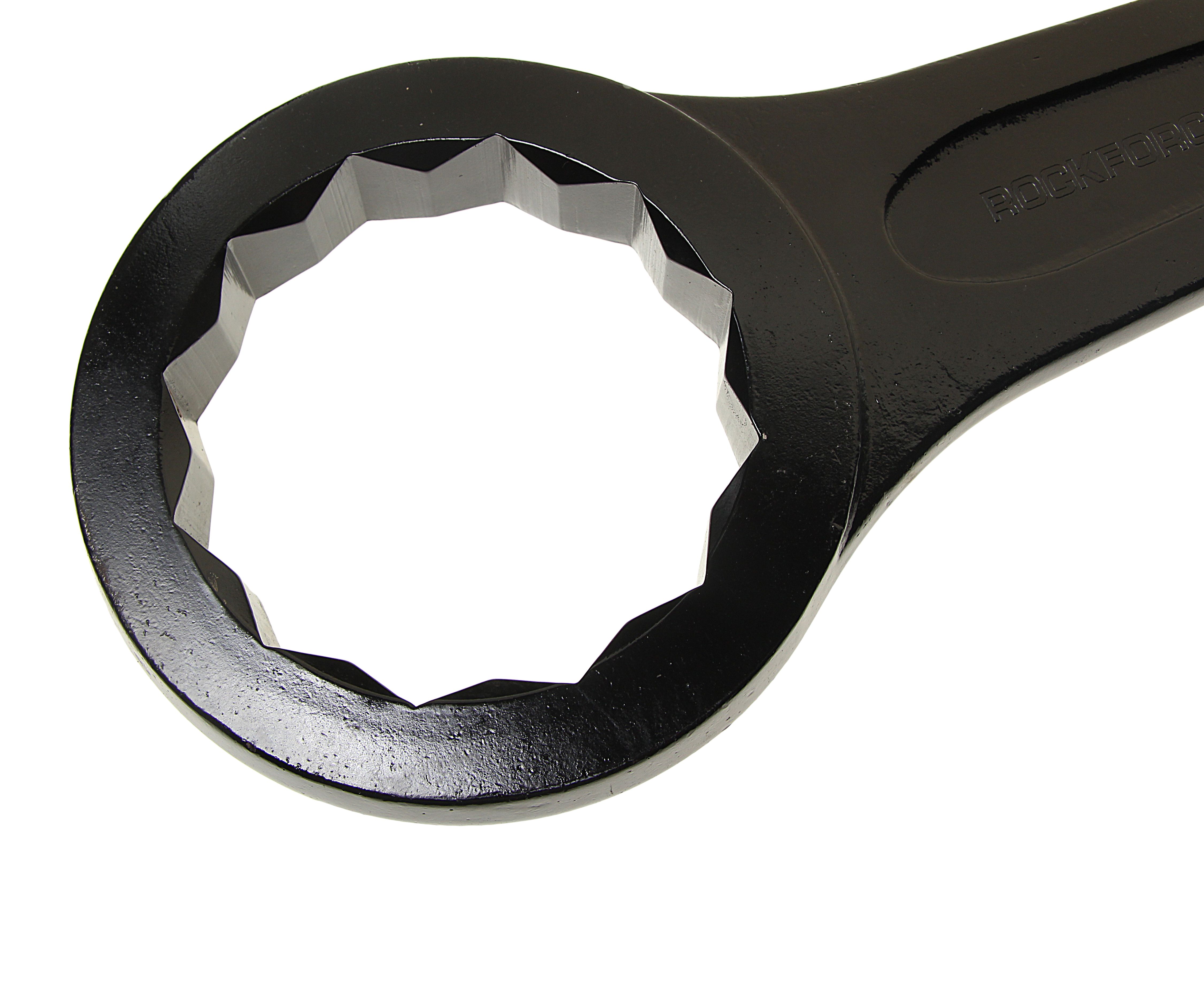 Ключ накидной RockForce ударный односторонний 115мм (L-430мм) Комплект ключей для работы с резьбовыми соединениями. Набор состоит из рожково-накидных ключей, с динамическим профилем, ключи установлены в полотно или пластиковом держателе. Рожковый профиль имеет 15-ти градусный угол, и такой же угол отгиба у накидного кольца, что упрощает работу с элементами в труднодоступных местах. Выполнен из высокопрочной хром-ванадиевой стали со специальной термообработкой.
