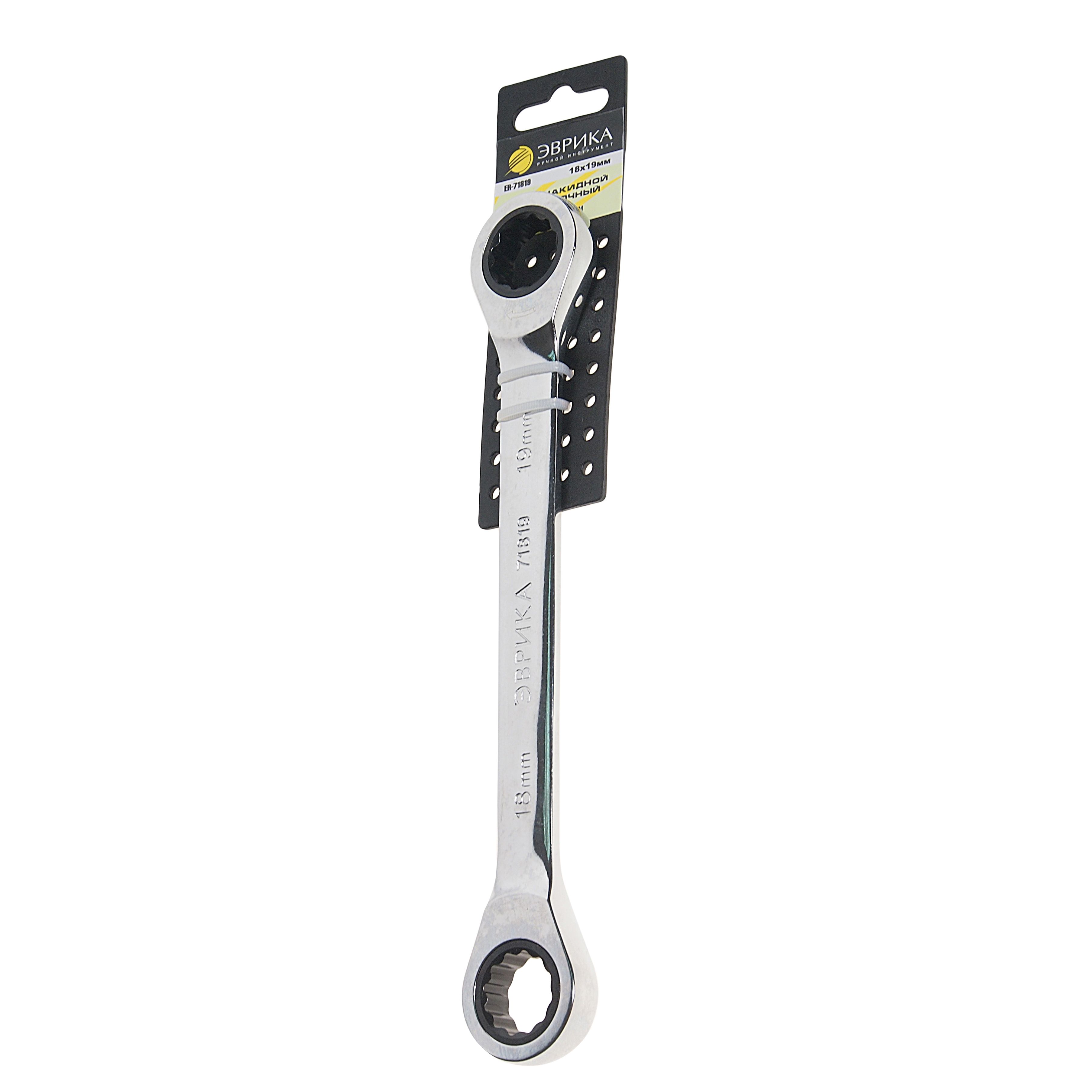 Накидной трещоточный ключ 18х19мм на держателе ЭВРИКА ER-71819H