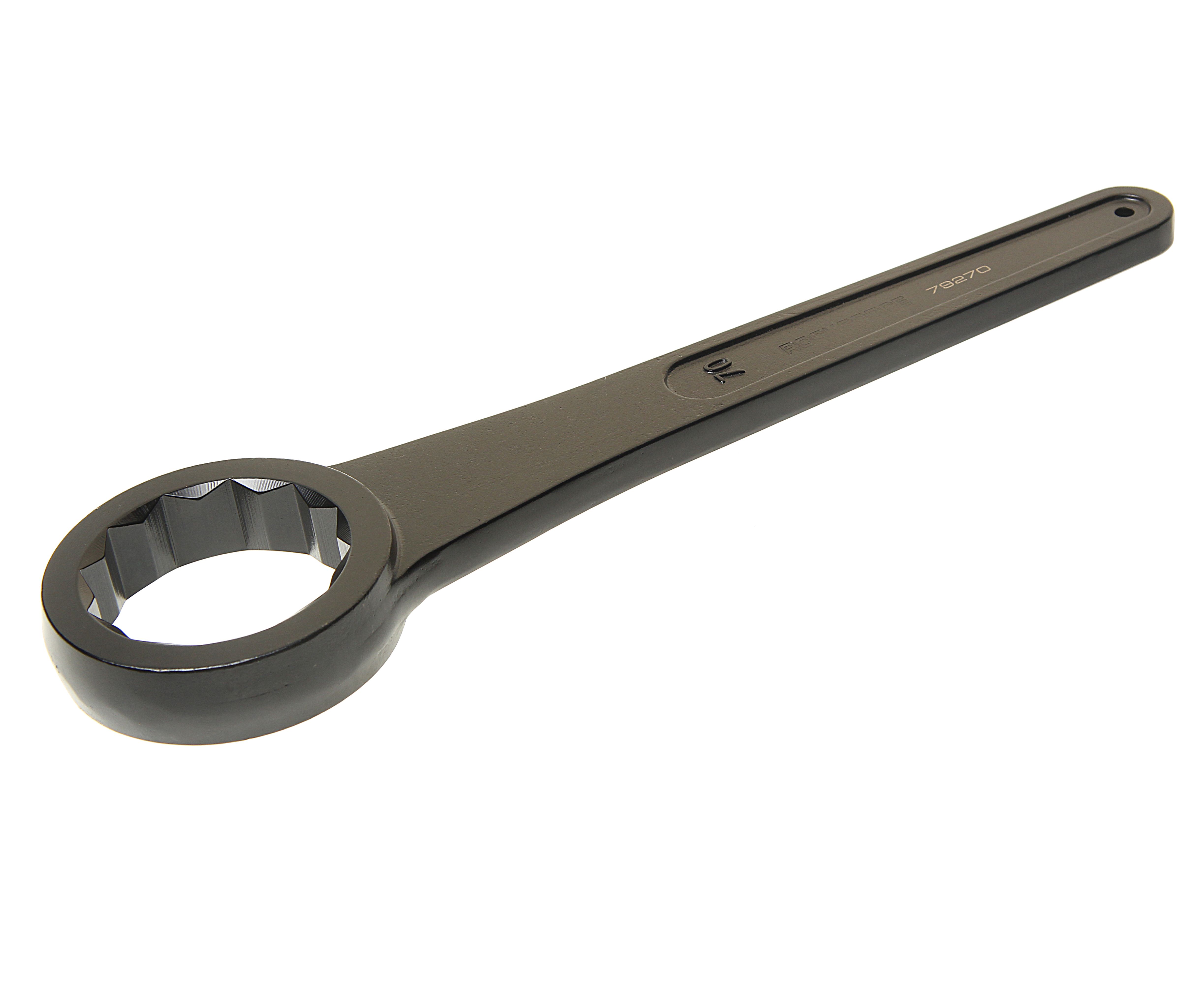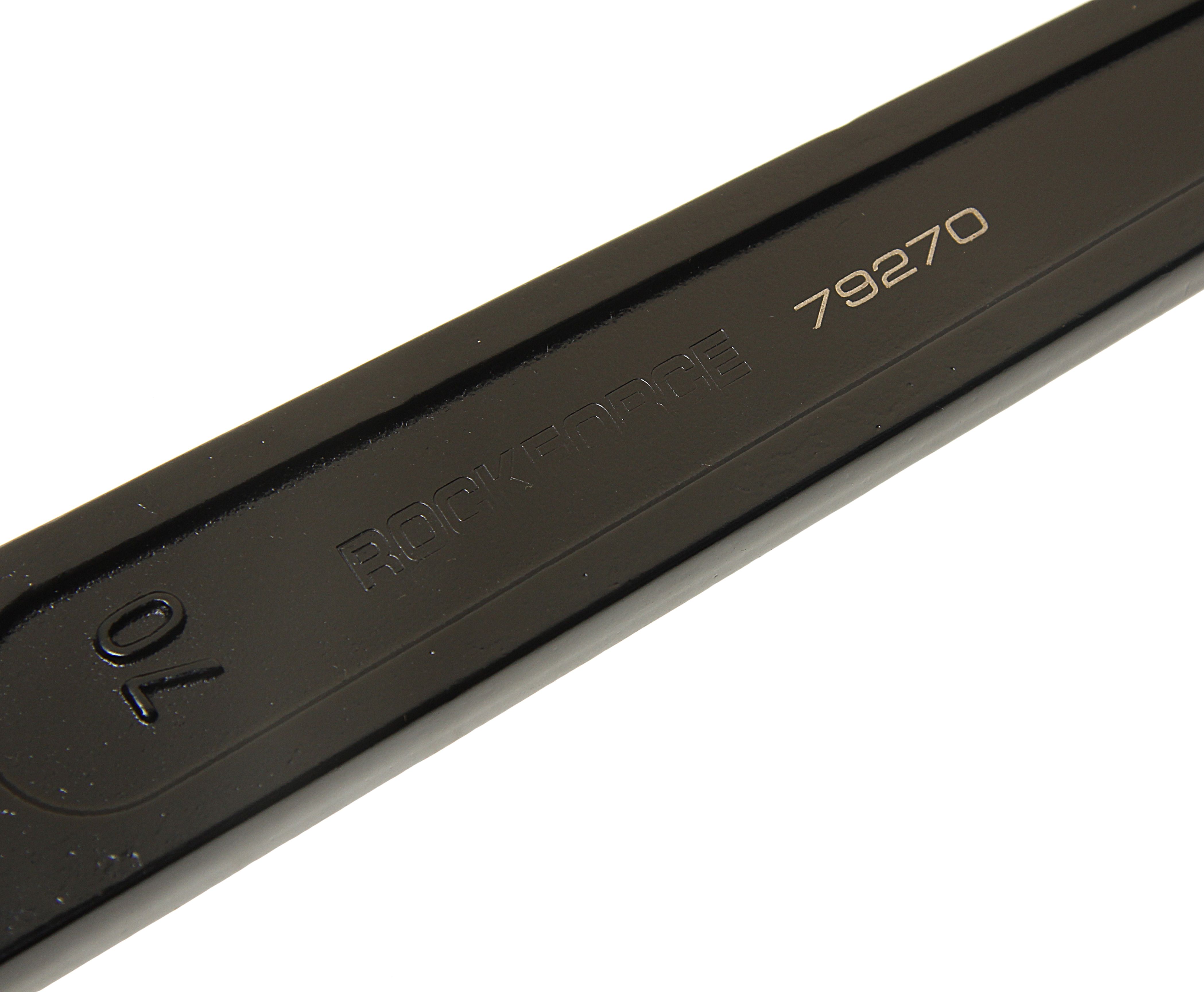 Ключ накидной RockForce ударный односторонний удлиненный 70мм (L-415мм) Комплект ключей для работы с резьбовыми соединениями. Набор состоит из рожково-накидных ключей, с динамическим профилем, ключи установлены в полотно или пластиковом держателе. Рожковый профиль имеет 15-ти градусный угол, и такой же угол отгиба у накидного кольца, что упрощает работу с элементами в труднодоступных местах. Выполнен из высокопрочной хром-ванадиевой стали со специальной термообработкой.