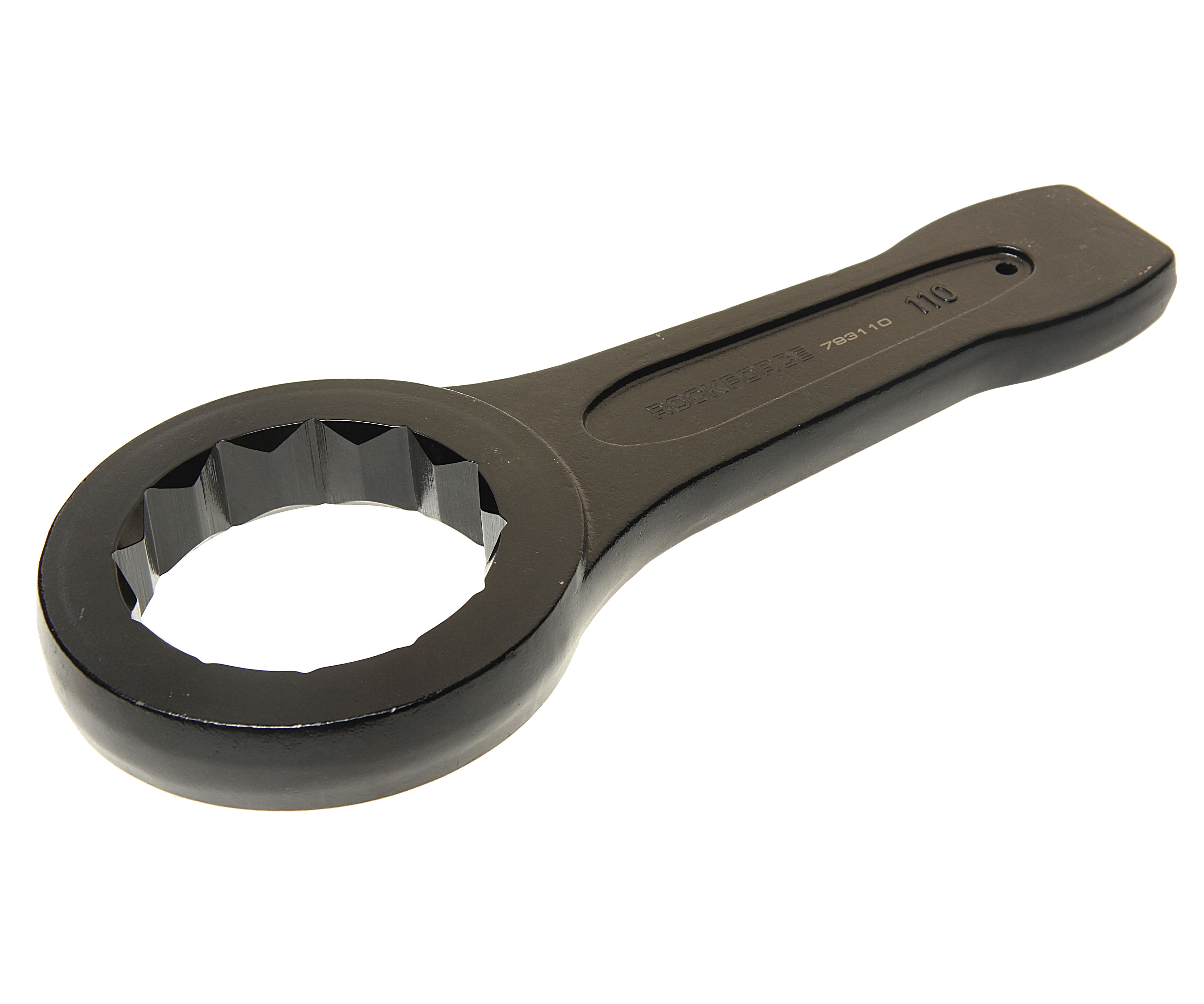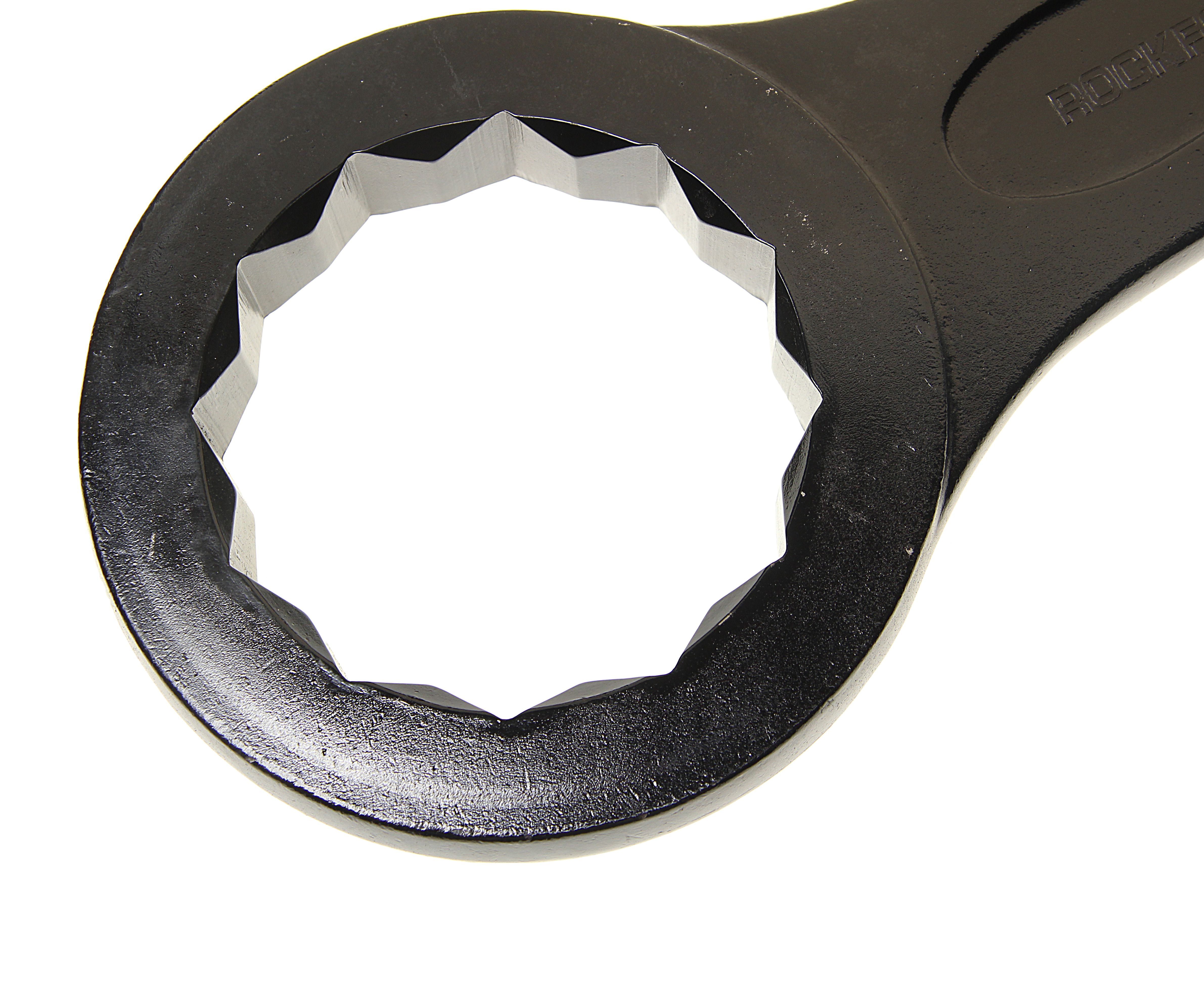 Ключ накидной RockForce ударный односторонний 110мм (L-430мм) Комплект ключей для работы с резьбовыми соединениями. Набор состоит из рожково-накидных ключей, с динамическим профилем, ключи установлены в полотно или пластиковом держателе. Рожковый профиль имеет 15-ти градусный угол, и такой же угол отгиба у накидного кольца, что упрощает работу с элементами в труднодоступных местах. Выполнен из высокопрочной хром-ванадиевой стали со специальной термообработкой.