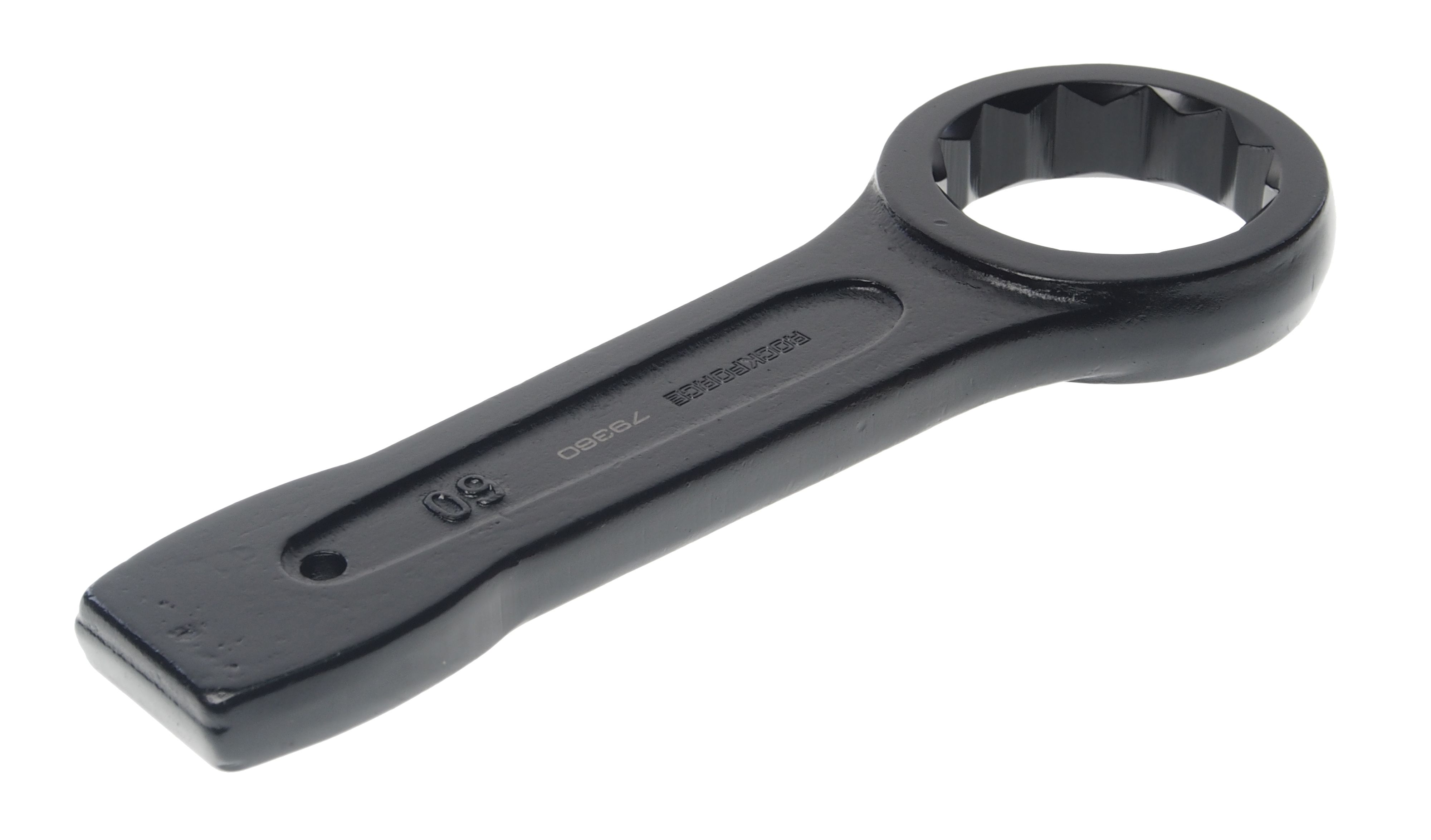 Ключ накидной RockForce ударный односторонний 60мм (L-270мм) Комплект ключей для работы с резьбовыми соединениями. Набор состоит из рожково-накидных ключей, с динамическим профилем, ключи установлены в полотно или пластиковом держателе. Рожковый профиль имеет 15-ти градусный угол, и такой же угол отгиба у накидного кольца, что упрощает работу с элементами в труднодоступных местах. Выполнен из высокопрочной хром-ванадиевой стали со специальной термообработкой.