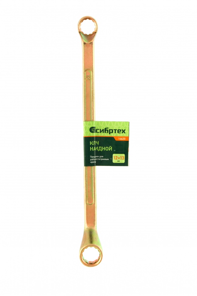 Накидной ключ Сибртех 14620 с покрытием из желтого цинка используется для монтажа и демонтажа резьбового крепежа с шестигранной головкой диаметром 12 и 13 мм. Пригодится для выполнения монтажных работ в гараже, на небольшом производстве и в быту. Кольцевой зев полностью захватывает шляпку крепежного элемента, поэтому ключом легко откручивать даже закисшие болты и гайки.ПреимуществаПрочность и долговечность — инструмент изготовлен из высококачественной углеродистой стали 45, твердость рабочих частей составляет 42 HRC, что соответствует требованиям ГОСТ (41-46 HRC).Устойчивость к воздействию влаги — желтое цинковое покрытие защищает от образования коррозии.Надежный захват крепежа — 12-гранный профиль каждого кольцевого зева имеет увеличенную площадь соприкосновения с головкой болта или гайки, что минимизирует риск повреждения ее граней.Продуманная конструкция — рабочие части смещены относительно плоскости рукоятки, что делает удобной работу в труднодоступных местах.
