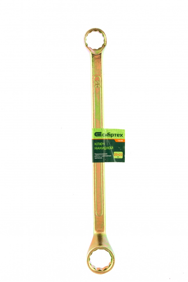 Накидной ключ Сибртех 14630 с покрытием из желтого цинка используется для монтажа и демонтажа резьбового крепежа с шестигранной головкой диаметром 20 и 22 мм. Пригодится для выполнения монтажных работ в гараже, на небольшом производстве и в быту. Кольцевой зев полностью захватывает шляпку крепежного элемента, поэтому ключом легко откручивать даже закисшие болты и гайки.ПреимуществаПрочность и долговечность — инструмент изготовлен из высококачественной углеродистой стали 45, твердость рабочих частей составляет 42 HRC, что соответствует требованиям ГОСТ (41-46 HRC).Устойчивость к воздействию влаги — желтое цинковое покрытие защищает от образования коррозии.Надежный захват крепежа — 12-гранный профиль каждого кольцевого зева имеет увеличенную площадь соприкосновения с головкой болта или гайки, что минимизирует риск повреждения ее граней.Продуманная конструкция — рабочие части смещены относительно плоскости рукоятки, что делает удобной работу в труднодоступных местах.