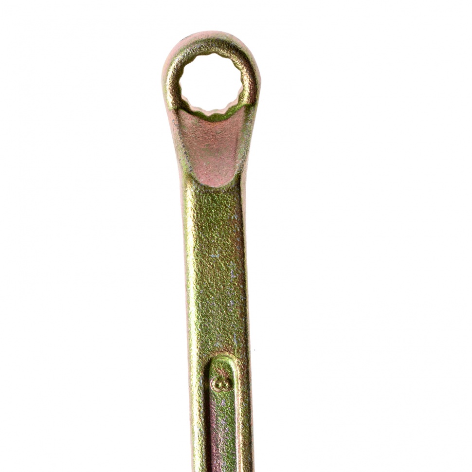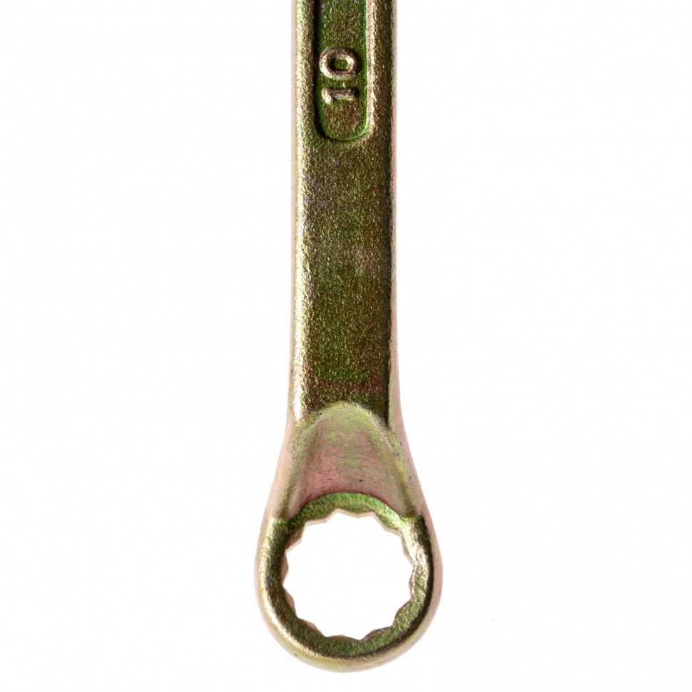 Накидной ключ Сибртех 14614 с покрытием из желтого цинка используется для монтажа и демонтажа резьбового крепежа с шестигранной головкой диаметром 8 и 10 мм. Пригодится для выполнения монтажных работ в гараже, на небольшом производстве и в быту. Кольцевой зев полностью захватывает шляпку крепежного элемента, поэтому ключом легко откручивать даже закисшие болты и гайки.ПреимуществаПрочность и долговечность — инструмент изготовлен из высококачественной углеродистой стали 45, твердость рабочих частей составляет 42 HRC, что соответствует требованиям ГОСТ (41-46 HRC).Устойчивость к воздействию влаги — желтое цинковое покрытие защищает от образования коррозии.Надежный захват крепежа — 12-гранный профиль каждого кольцевого зева имеет увеличенную площадь соприкосновения с головкой болта или гайки, что минимизирует риск повреждения ее граней.Продуманная конструкция — рабочие части смещены относительно плоскости рукоятки, что делает удобной работу в труднодоступных местах.