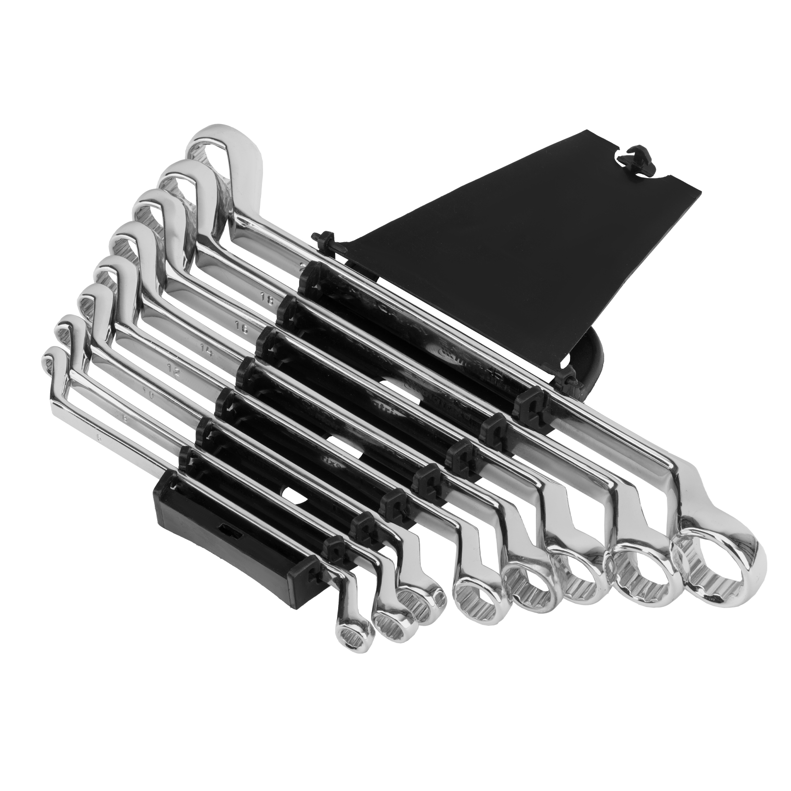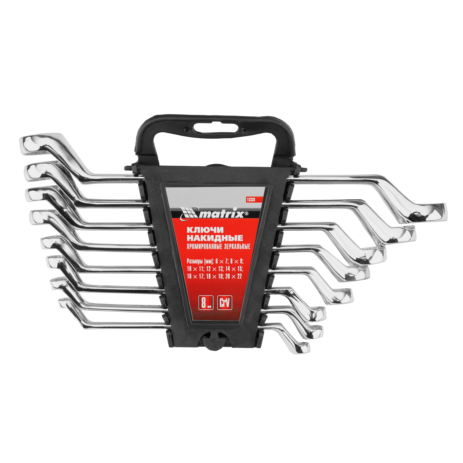 Набор из 8 накидных ключей Matrix Elliptical 15338 с зеркальным хромированием, из стали CrV, предназначен для откручивания и закручивания болтовых соединений диаметром 6-22 мм. Будет полезен слесарям, строителям, автомеханикам и другим мастерам для проведения ремонтных работ.ПреимуществаПрочность и долговечность — ключи из хромованадиевой стали, с рабочими частями твердостью 40-45 HRC, выдерживают интенсивное использование.Надежная защита от коррозии — зеркальное хромоникелевое покрытие сохраняется в течение всего срока службы.Эффективная работа — 12-гранный кольцевой профиль имеет увеличенную площадь контакта с головкой крепежа, что позволяет снизить риск ее повреждения.Продуманная конструкция — рабочие части смещены относительно плоскости рукоятки, это делает удобной работу в труднодоступных местах.Удобное хранение и транспортировка — в комплект входит пластмассовый держатель.