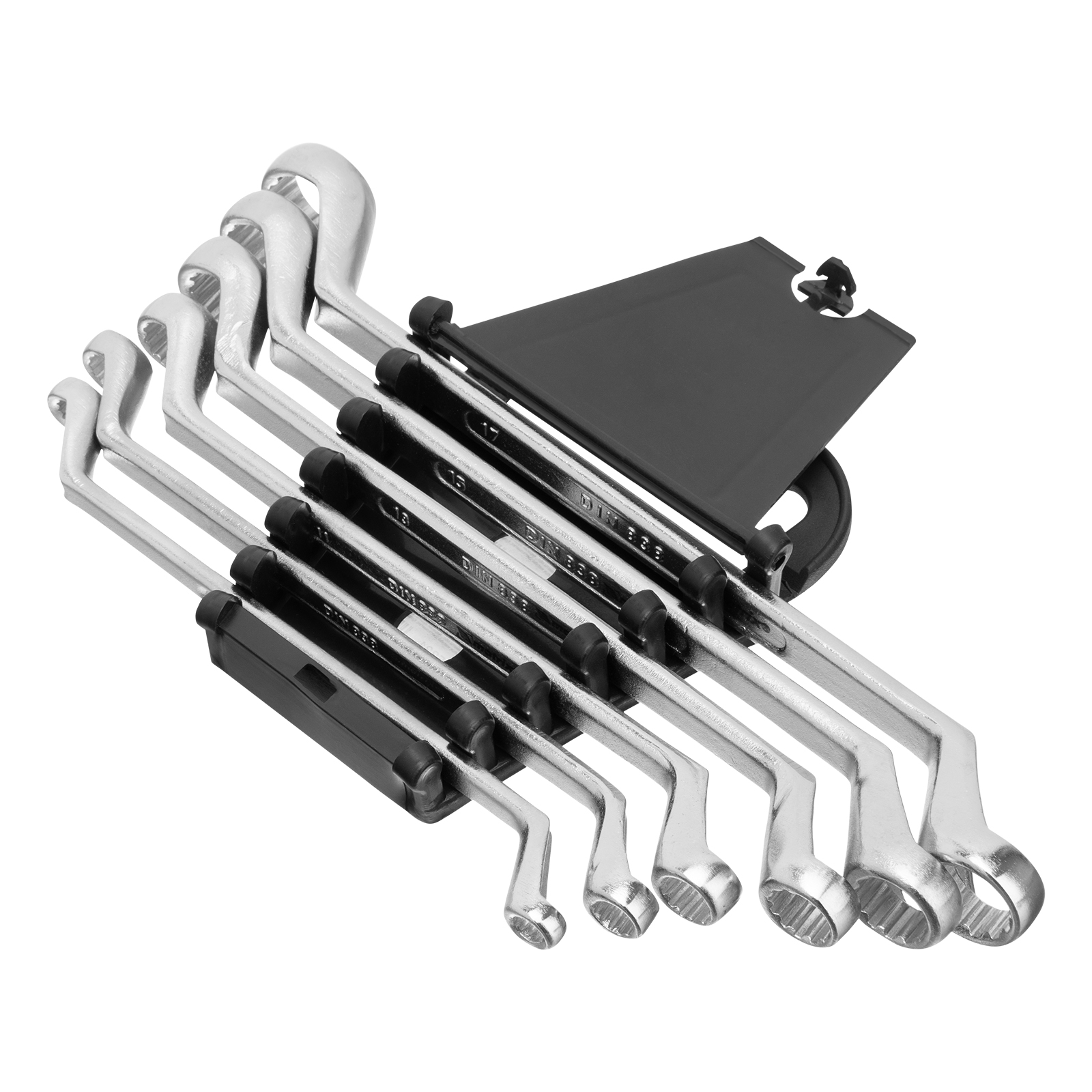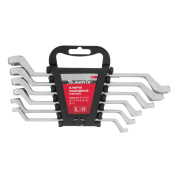Набор из 6 накидных ключей Matrix 15331 из стали CR-V, с покрытием из полированного хрома, предназначен для монтажа и демонтажа крепежных элементов размером 6-17 мм. Накидные рабочие части с круглым профилем полностью охватывают головку крепежа и легко справляются даже с закисшими болтами и гайками. Благодаря изогнутой форме ключи удобны для работы в труднодоступных местах. Инструменты подходят для эксплуатации в бытовых условиях, автосервисе и частной мастерской.ПреимуществаВысокий ресурс — инструменты изготовлены из прочной хромованадиевой стали, твердость рабочих частей составляет 44 HRC.Коррозионная стойкость — полированное хромоникелевое покрытие защищает инструменты от воздействия влаги.Универсальность — в набор входит 6 двусторонних ключей для работы с крепежом разного размера.Удобный держатель — ключи не выпадут и не потеряются во время хранения и транспортировки.