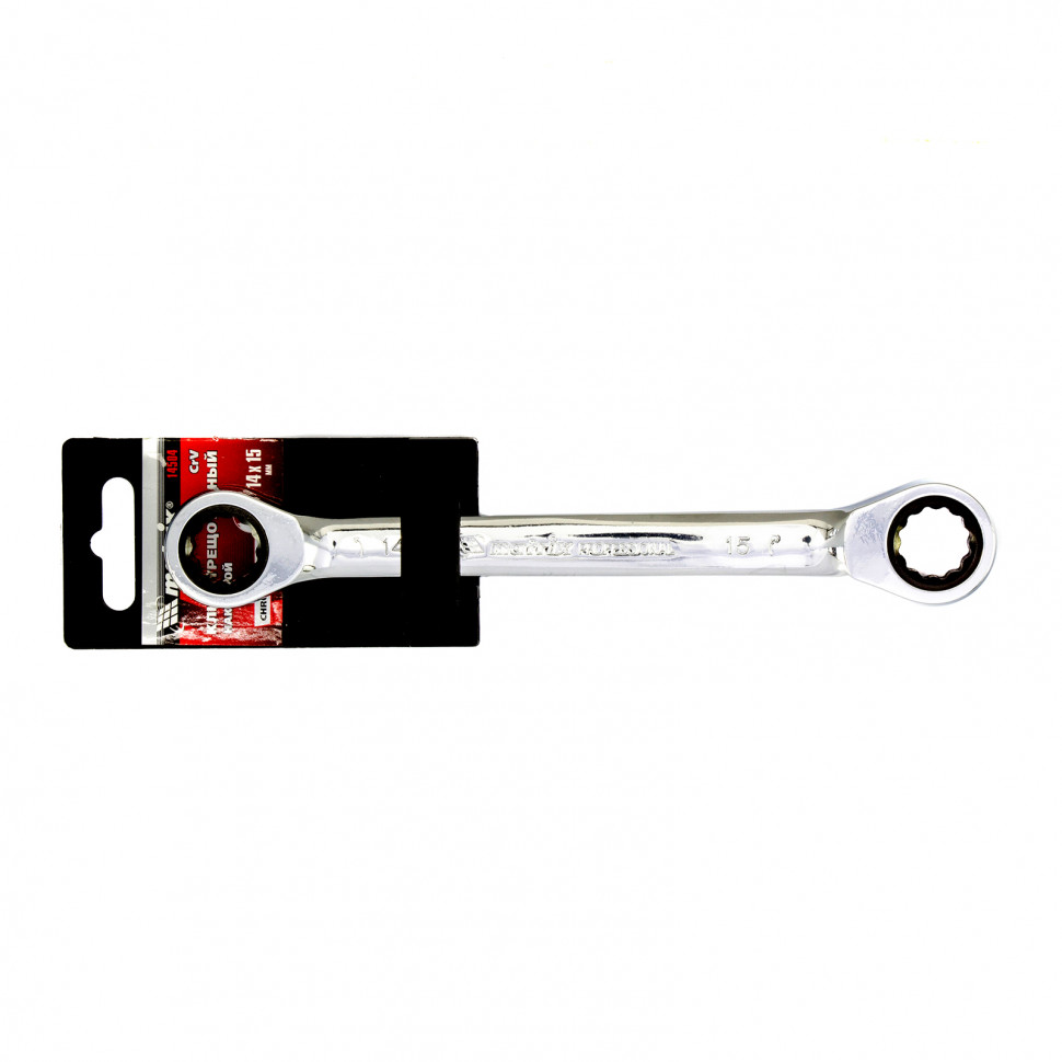 Накидной трещоточный ключ MTX 145049 из стали CrV, с покрытием «зеркальный хром», имеет 2 рабочих зева 14 и 15 мм и предназначен для закручивания и откручивания болтовых соединений. Накидные части имеют 12-гранный профиль, что увеличивает площадь соприкосновения с головкой крепежа и предотвращает деформацию ее граней. Инструмент пригодится дома, на даче и в гараже. Преимущества Прочность и долговечность — ключ изготовлен из высококачественной стали 40CrV1 и имеет хромоникелевое антикоррозионное покрытие. Устойчивость к нагрузкам — твердость материала храпового механизма составляет 58 HRC. Комфортная работа — храповой механизм (трещотка) с 72 зубцами обеспечивает плавный ход, минимальный угол поворота ключа составляет 5°.