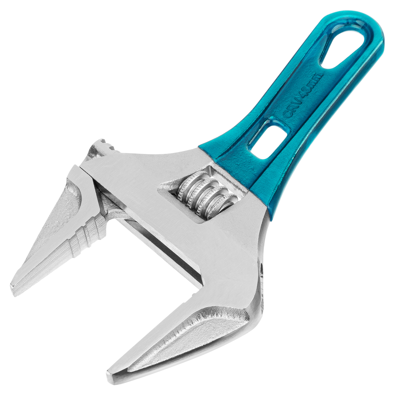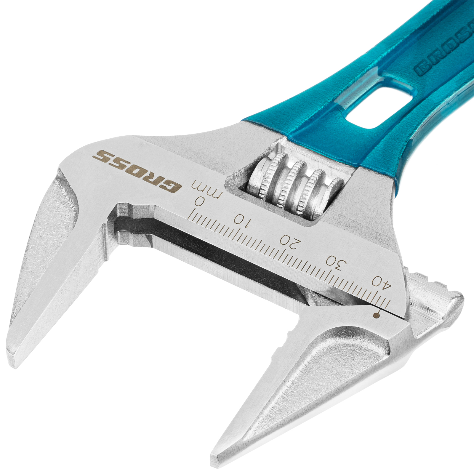 Разводной ключ Gross 15566 длиной 160 мм, из стали CrV, с укороченной ручкой и широким диапазоном раскрытия зева до 43 мм, подходит для работы как с мелкими, так и с крупными крепежными элементами. Губки раскрываются на 50% больше, чем у стандартных ключей. Ребристая рабочая поверхность губок обеспечивает надежный захват деталей и повышает точность работы.ПреимуществаНадежность и долговечность — ключ выполнен из высококачественной хромованадиевой стали.Укороченная рукоятка и тонкие губки — ключом удобно работать в труднодоступных местах.Защита от ржавчины — хромированный корпус устойчив к коррозии, поэтому инструмент прослужит долго.Облегченный корпус — ключом можно долго работать без усталости.