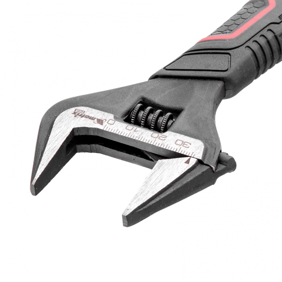 Фосфатированный разводной ключ Matrix PRO 15578 длиной 250 мм, с тонкими губками и двухкомпонентной рукояткой, — профессиональный инструмент, применяется для монтажа и демонтажа крепежных элементов и работы с узкими фитингами. Максимальная ширина раскрытия губок составляет 50 мм, что позволяет работать с деталями разного размера. Благодаря удлиненным тонким губкам инструмент удобен для работы в труднодоступных местах.ПреимуществаНадежность и долговечность — ключ изготовлен из прочной стали 40 CrV, губки закалены до твердости 50 HRC и выдерживают высокие нагрузки.Защита от коррозии — фосфатированная поверхность устойчива к воздействию влаги.Комфортное использование — двухкомпонентная рукоятка не выскальзывает из ладони, даже если работать без перчаток.