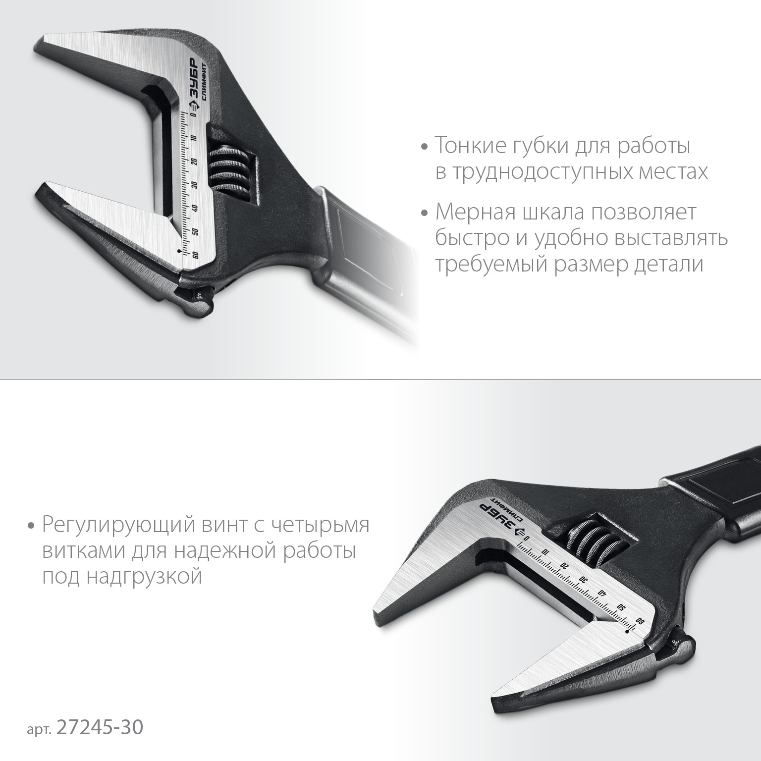 Ключи разводные ЗУБР ″СлимФит″ изготовлены из высокопрочной легированной стали CR-V, защищены от коррозии благодаря фосфатированному покрытию. Обладают повышенным ресурсом и обеспечивают длительную и качественную работу по монтажу и демонтажу резьбовых соединений.