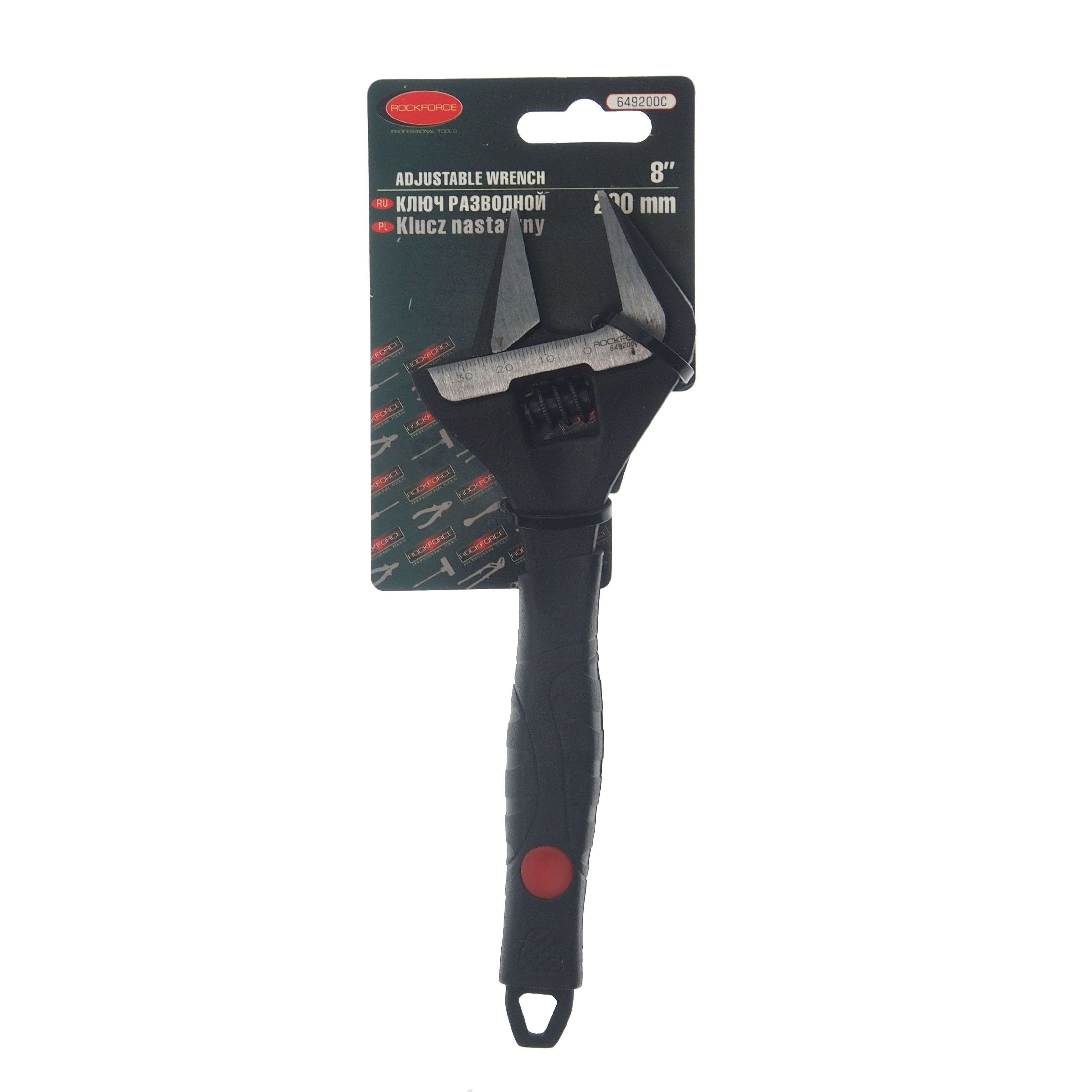Ключ RockForce разводной с прорезиненной рукояткой 8"-200мм(захват 0-35мм, кованная сталь), на блистере может заменить собой, несколько гаечных и рожковых ключей разного размера. Имеется рельефная рукоятка, которая исключает скольжения инструмента при работе. Имеет оптимальную длину, тем самым позволяя вращать ключ с большой силой.