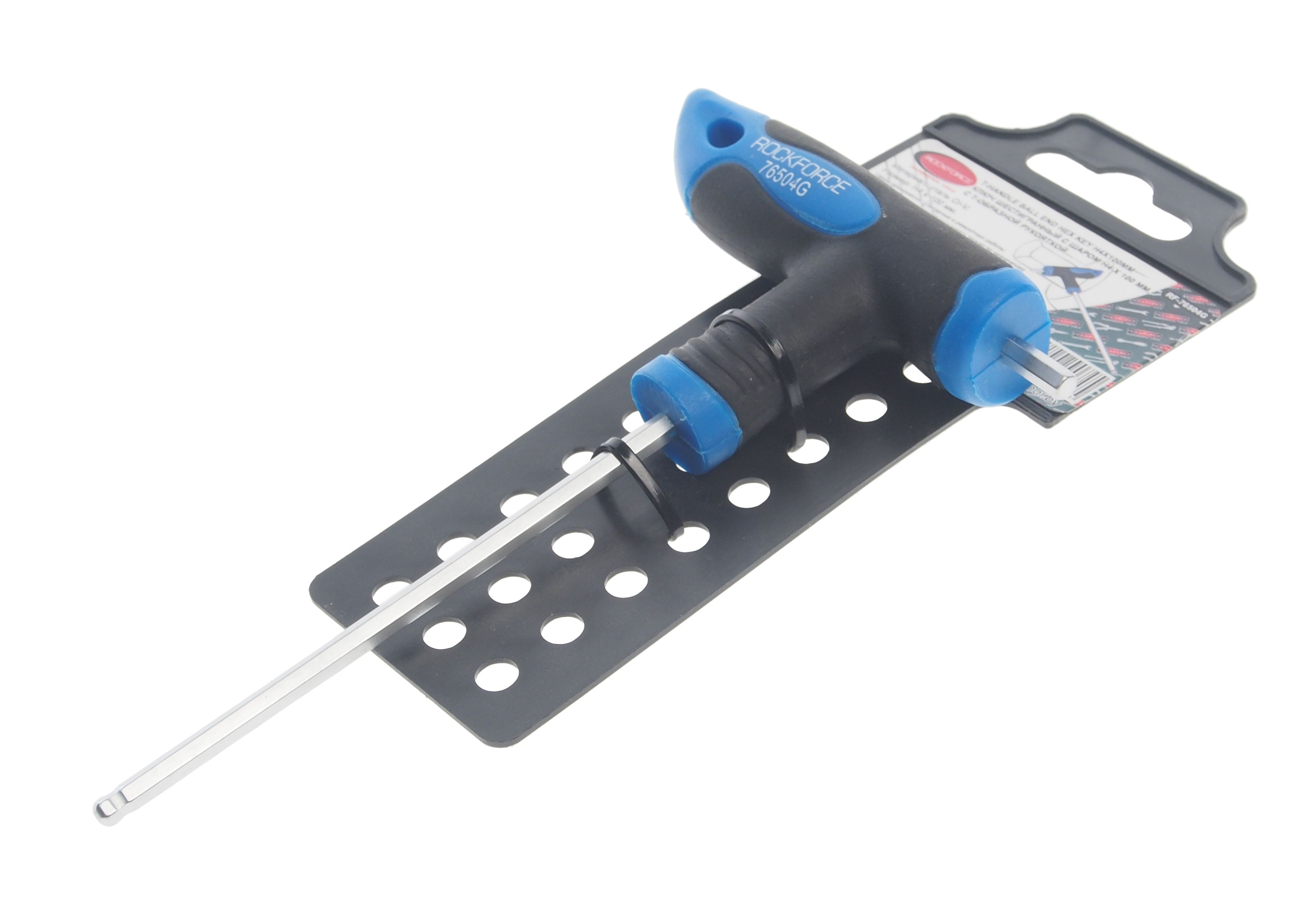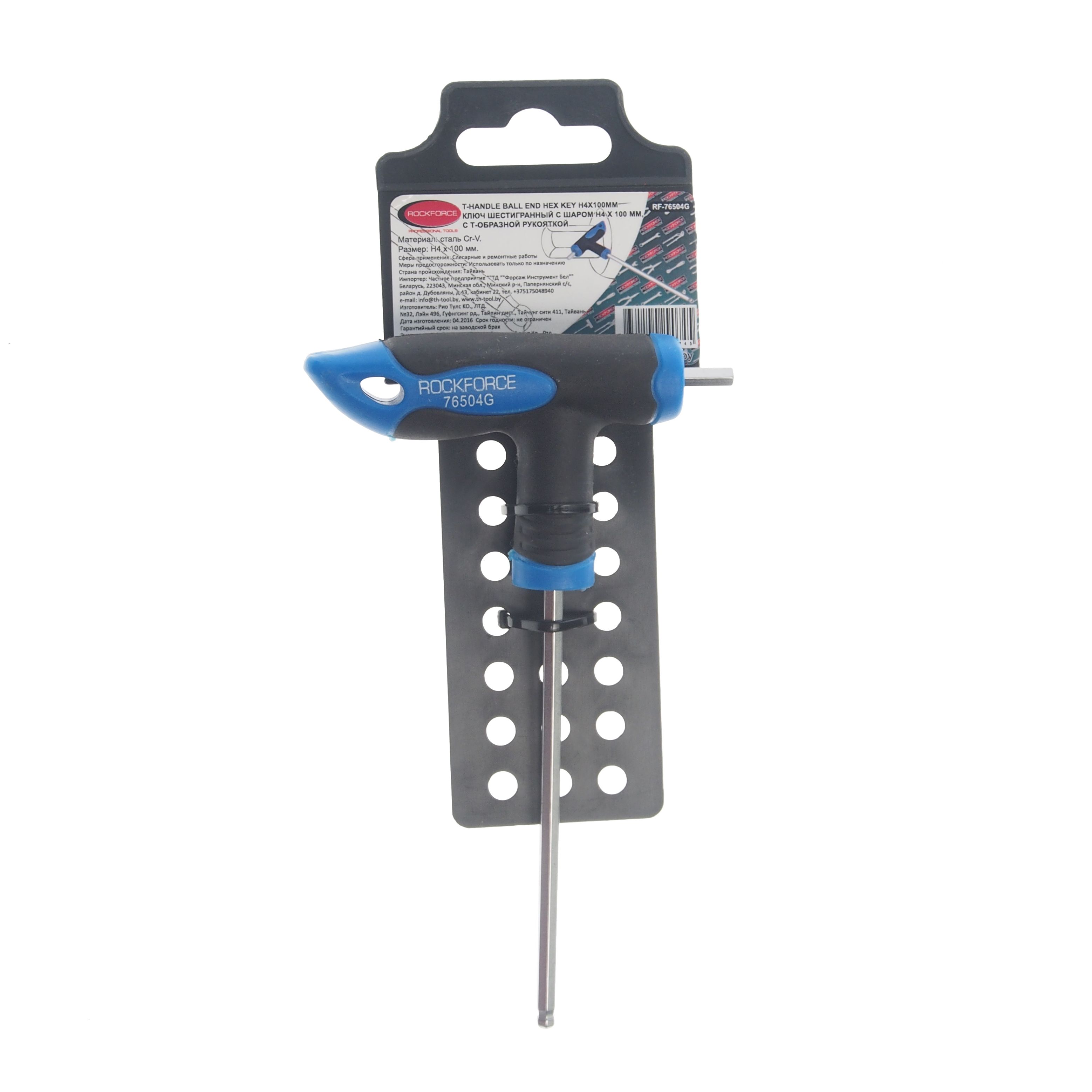 Ключ RockForce Т-образный 6-гранный с шаром и прорезиненной рукояткойH4×100мм, на пластиковом держателе Ключ для работы с шестигранными крепежными элементами. Имеет Г-образную форму, что позволяет максимально эффективно работать с крепежом в различных условиях, а так же обеспечивает большим крутящим моментом. Инструмент изготовлен из прочной хромованадиевой стали, которая обеспечивает необходимую жесткость инструмента и увеличивает его срок эксплуатации.