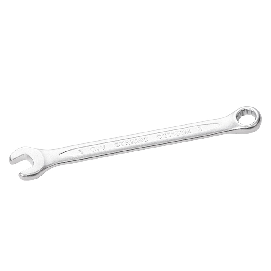 Финишная обработка Soft matt и хром никелевое покрытие комбинированного ключа обеспечивает надежную защиту от коррозии, а также надежный хват и препятствует выскальзыванию инструмента из рук. 12-гранный профиль накидной части подходит к головкам болтов и гайкам как 6-, так и 12-гранного профиля, и обеспечивает 5 градусный шаг перехвата. Специальный отгиб, в 15 градусов накидной части ключа позволит работать в местах с ограниченным доступом к крепежу и поможет подобраться к крепежу как с торца, так и с боку, в зависимости от места выполняемых работ.