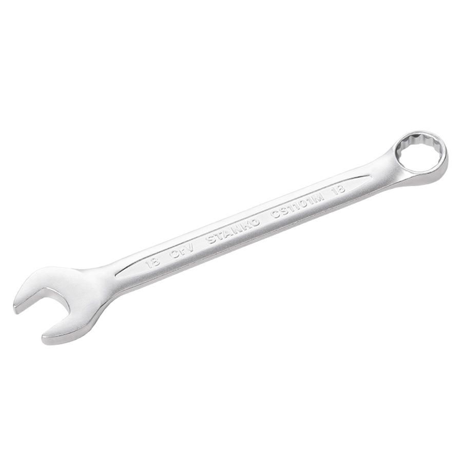 Финишная обработка Soft matt и хром никелевое покрытие комбинированного ключа обеспечивает надежную защиту от коррозии, а также надежный хват и препятствует выскальзыванию инструмента из рук. 12-гранный профиль накидной части подходит к головкам болтов и гайкам как 6-, так и 12-гранного профиля, и обеспечивает 5 градусный шаг перехвата. Специальный отгиб, в 15 градусов накидной части ключа позволит работать в местах с ограниченным доступом к крепежу и поможет подобраться к крепежу как с торца, так и с боку, в зависимости от места выполняемых работ.