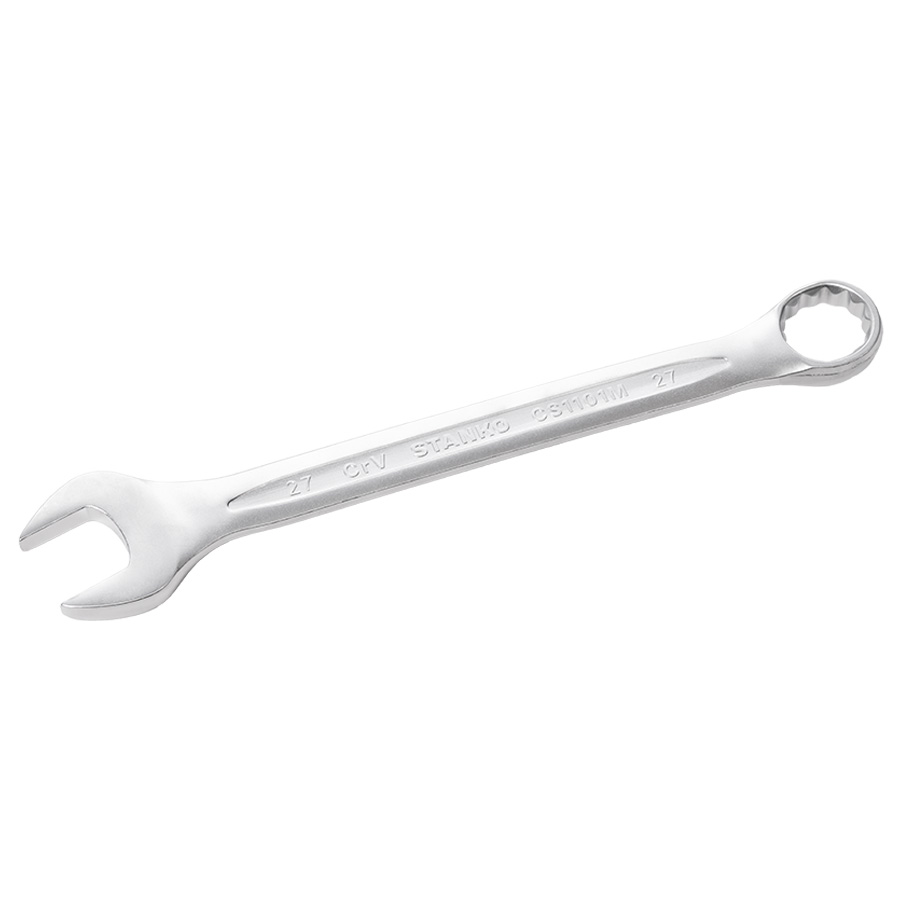 Финишная обработка Soft matt и хром никелевое покрытие комбинированного ключа обеспечивает надежную защиту от коррозии, а также надежный хват и препятствует выскальзыванию инструмента из рук. 12-гранный профиль накидной части подходит к головкам болтов и гайкам как 6-, так и 12-гранного профиля, и обеспечивает 5 градусный шаг перехвата. Специальный отгиб, в 15 градусов накидной части ключа позволит работать в местах с ограниченным доступом к крепежу и поможет подобраться к крепежу как с торца, так и с боку, в зависимости от места выполняемых работ.