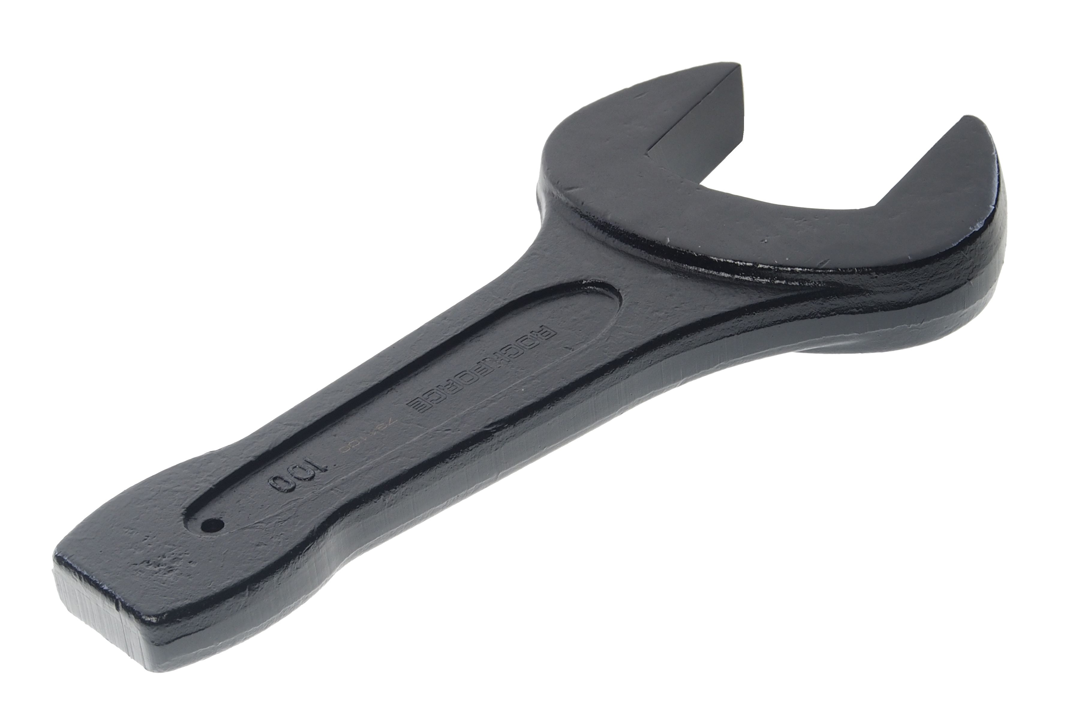Ключ рожковый RockForce ударный односторонний 100мм (L-410мм) Простой, прочный и качественный инструмент для ручной работы с резьбовыми соединениями. У ключа имеется два разных рабочих размера, что увеличивает его диапазон применения. Ключ проходит контроль качества на заводе изготовителя, и повторный контроль перед поступлением в продажу.