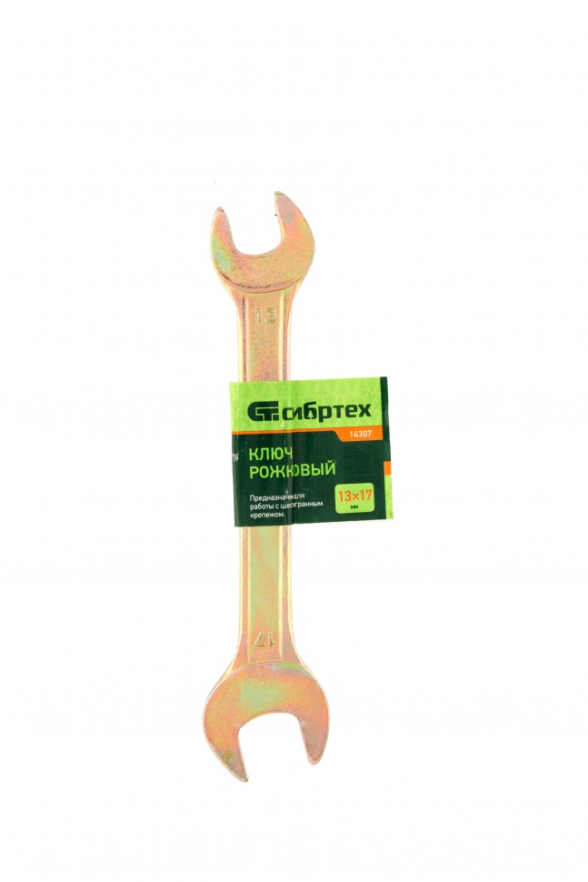Рожковый ключ Сибртех 14307, 13 х 17 мм, с покрытием из желтого цинка, предназначен для закручивания и откручивания резьбовых крепежей с шестигранными головками. Имеет две рожковые части с размером зева 13 и 17 мм. Губки расположены под небольшим углом к оси тела ключа, что повышает удобство работы в ограниченном пространстве. Инструмент пригодится при проведении монтажных работ, сборке и разборке оборудования, для ремонта техники, а также будет полезен в быту.ПреимуществаКлюч изготовлен из инструментальной углеродистой стали 45, чем обусловлена его прочность и устойчивость к механическим воздействиям.Губки закалены до твердости 42 HRC в соответствии с требованиями ГОСТа, что подтверждает надежность инструмента.Желтое цинковое покрытие предотвращает образование коррозии и продлевает срок службы ключа.
