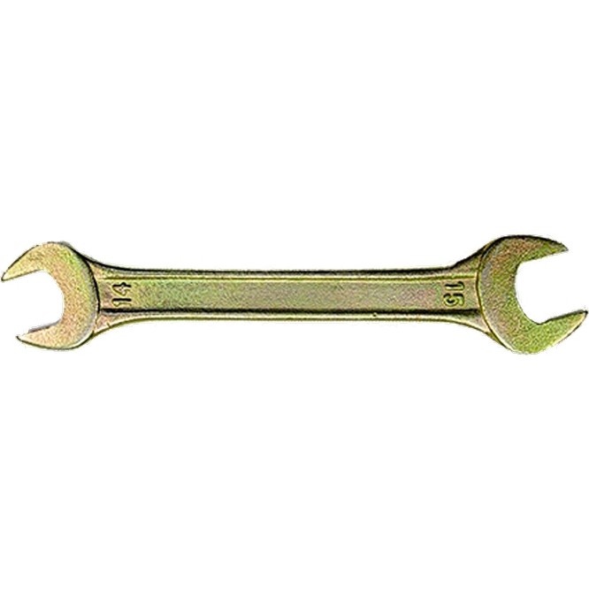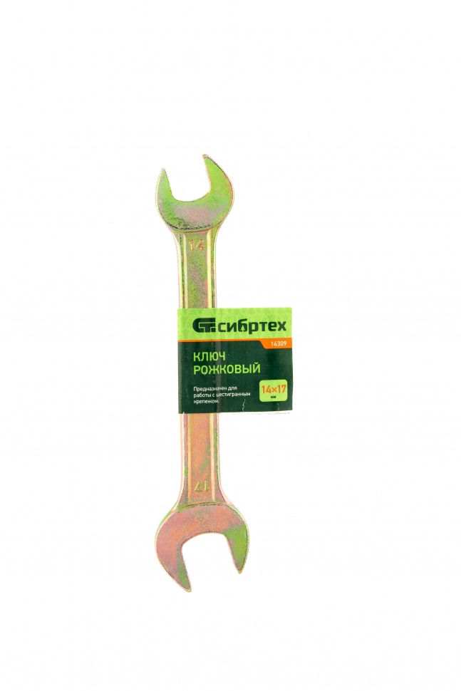 Рожковый ключ Сибртех 14309, 14 х 17 мм, с покрытием из желтого цинка, предназначен для закручивания и откручивания резьбовых крепежей с шестигранными головками. Имеет две рожковые части с размером зева 14 и 17 мм. Губки расположены под небольшим углом к оси тела ключа, что повышает удобство работы в ограниченном пространстве. Инструмент пригодится при проведении монтажных работ, сборке и разборке оборудования, для ремонта техники, а также будет полезен в быту.ПреимуществаКлюч изготовлен из инструментальной углеродистой стали 45, чем обусловлена его прочность и устойчивость к механическим воздействиям.Губки закалены до твердости 42 HRC в соответствии с требованиями ГОСТа, что подтверждает надежность инструмента.Желтое цинковое покрытие предотвращает образование коррозии и продлевает срок службы ключа.