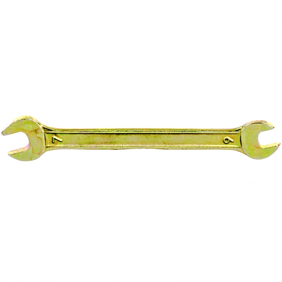 Рожковый ключ Сибртех 14301, 6 х 7 мм, с покрытием из желтого цинка, предназначен для закручивания и откручивания резьбовых крепежей с шестигранными головками. Имеет две рожковые части с размером зева 6 и 7 мм. Губки расположены под небольшим углом к оси тела ключа, что повышает удобство работы в ограниченном пространстве. Инструмент пригодится при проведении монтажных работ, сборке и разборке оборудования, для ремонта техники, а также будет полезен в быту.ПреимуществаКлюч изготовлен из инструментальной углеродистой стали 45, чем обусловлена его прочность и устойчивость к механическим воздействиям.Губки закалены до твердости 42 HRC в соответствии с требованиями ГОСТа, что подтверждает надежность инструмента.Желтое цинковое покрытие предотвращает образование коррозии и продлевает срок службы ключа.