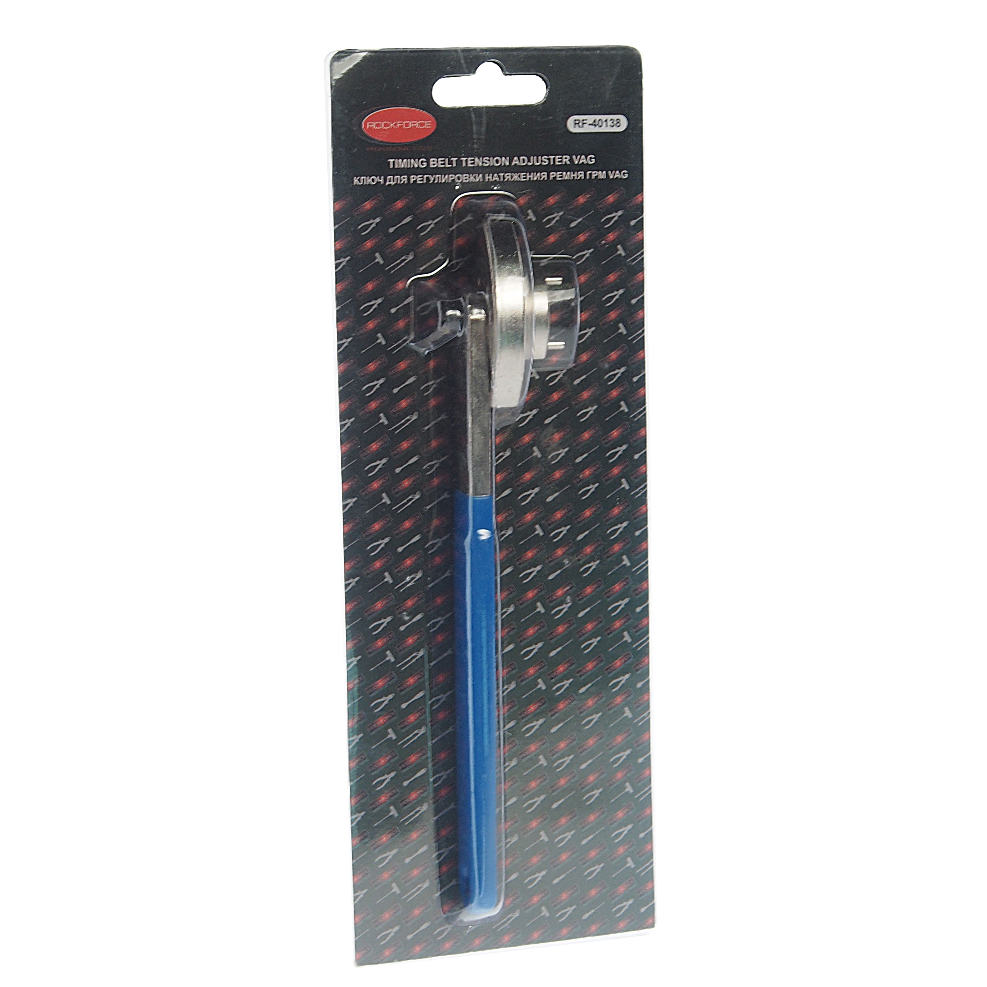 Ключ для регулировки натяжения ремня ГРМ RockForce, Ключ используется для монтажа или демонтажа крепежного элемента в автомобиле. Инструмент изготовлен из прочной стали и имеет удобную рукоятку, которая обеспечит эффективность даже при длительной эксплуатации. Вставка приспособлена для быстрого и качественного ремонта автомобилей марки VAG