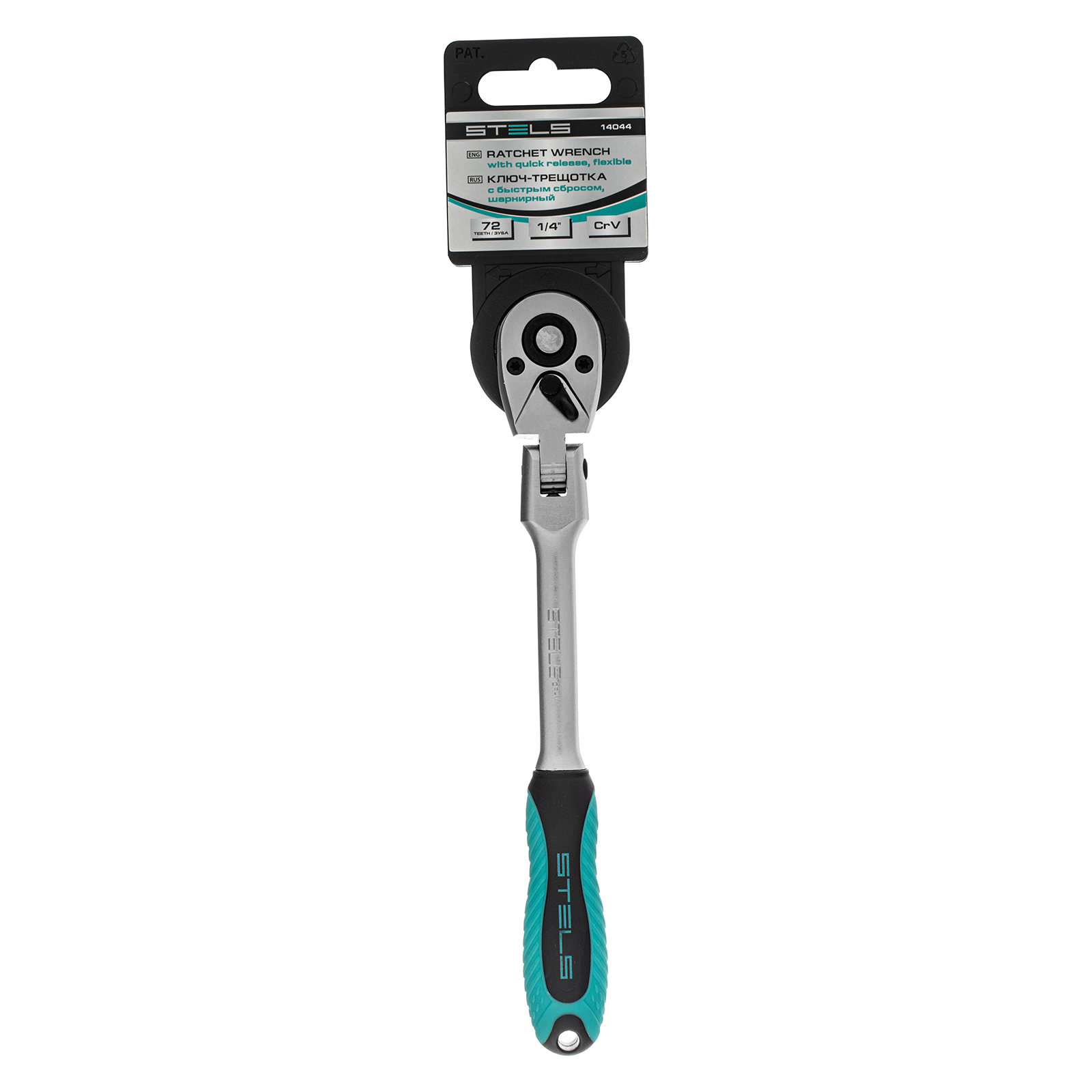 Шарнирный ключ-трещотка Stels 14044 из стали CrV, с 72 зубцами и быстрым сбросом, совместим с торцевыми головками, адаптерами и удлинителями с посадочным гнездом 1/4". Предназначен для закручивания и раскручивания резьбовых соединений. Исключительная плавность хода обеспечивается 72-зубым храповым механизмом. Ключом можно работать в ограниченном пространстве — шаг трещотки составляет всего 5°. Инструмент будет полезен в сервисной мастерской, автотехцентре, а также дома, на даче или в поездке.ПреимуществаВысокий показатель прочности и износостойкости — ключ изготовлен из хромованадиевой стали.Долговечность — хромовое покрытие защищает ключ от коррозии.Эффективная работа — присоединительный квадрат с шариковым фиксатором надежно удерживает насадку.Переключатель направления вращения — ключом можно не только закручивать, но и откручивать крепеж.Удобная работа в труднодоступных местах — рабочая часть имеет шарнирное крепление.Легкая замена насадок — ключ снабжен механизмом быстрого сброса.Комфортная работа — эргономичная двухкомпонентная рукоятка удобно лежит в руке и не выскальзывает из ладони.