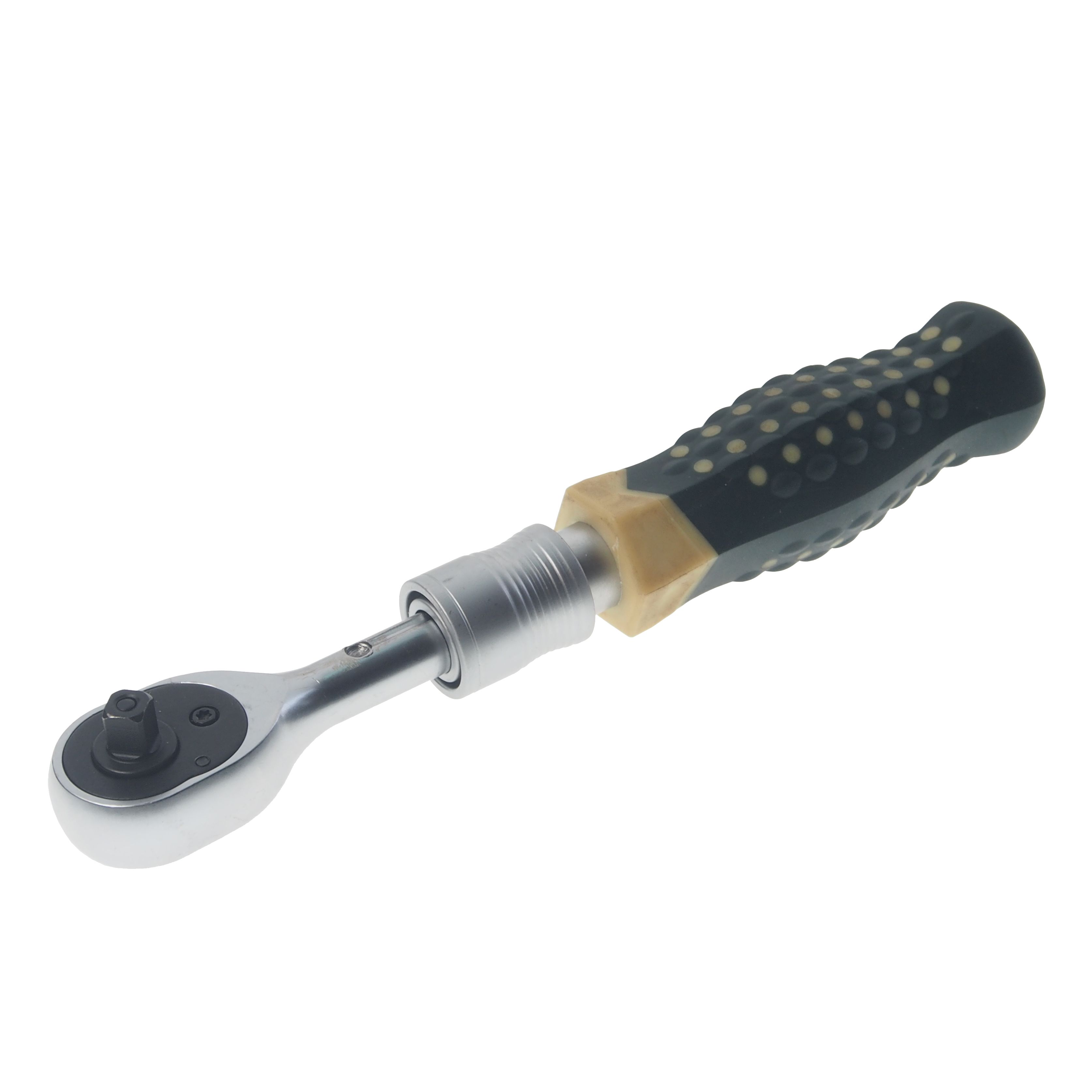 Трещотка RockForce реверсивная телескопическая с резиновой ручкой 1L 165-230мм(72зуб.) используется для установки и снятия крепежных элементов. Инструмент используется совместно с торцевыми головками, под имеющий размер посадочного квадрата. Рабочая часть трещотки выполнена из хром-ванадиевой стали, и имеет удобную рукоятку, которая обеспечит простую и комфортную работу с инструментом.