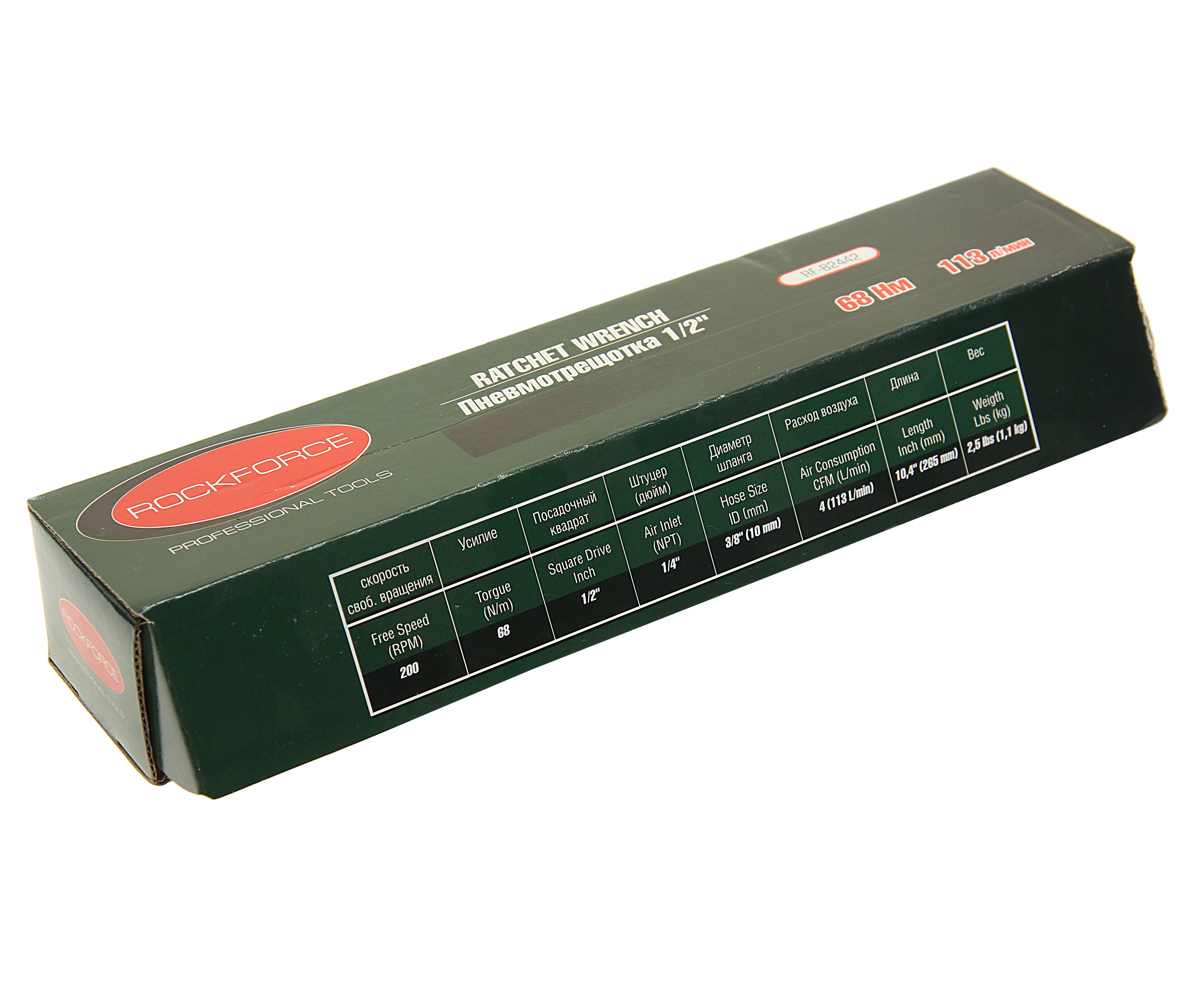 Пневмотрещотка RockForce 68Нм, 1″ (потребление 113л/мин) сконструирована для быстрого закручивания болтов, винтов и гаек. Благодаря наличию функции реверса, с помощью данной модели можно также откручивать болты, гайки и винты. Рукоятка инструмента имеет ребристую поверхность — для лучшего удержания трещотки при работе.