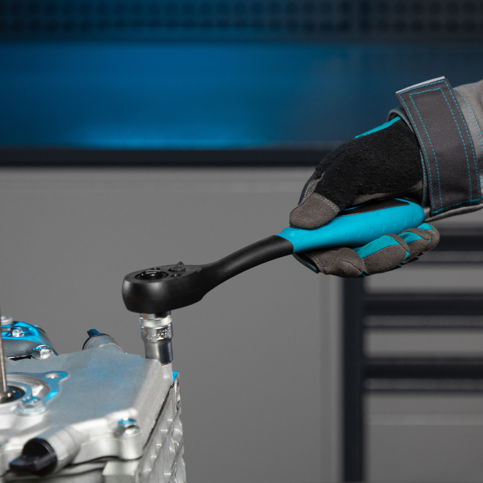 Ключ-трещотка Gross Comfort 14082 из стали CrV, с 2-компонентной рукояткой, присоединительным квадратом 1/2 дюйма и функцией быстрого сброса, оснащен храповым механизмом с 72 зубцами для быстрого и плавного закручивания/откручивания резьбовых крепежей. Удобен для работы в ограниченном пространстве, т.к. шаг трещотки составляет всего 5 градусов. Трещоточный ключ используется в сервисных центрах, авторемонтных мастерских, будет полезен при монтаже оборудования, также пригодится дома, в гараже или на даче.ПреимуществаДолговечность — инструмент изготовлен из стали хромованадиевой группы, что гарантирует его износостойкость.Устойчивость к агрессивным воздействиям — благодаря защитному полипропиленовому покрытию ключ подходит для работы в экстремальных условиях.Быстрый переход от монтажа к демонтажу — флажковый переключатель позволяет мгновенно изменить направление вращения храповика.Надежная фиксация оснастки — благодаря шариковому фиксатору насадка крепко держится на рабочем квадрате.Быстрая замена насадок — кнопкой сброса можно мгновенно освободить присоединительный квадрат от головки.Комфорт во время использования — эргономичная рукоятка дает возможность долго работать без усталости.