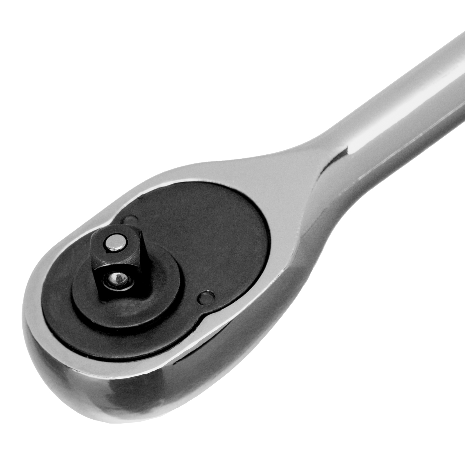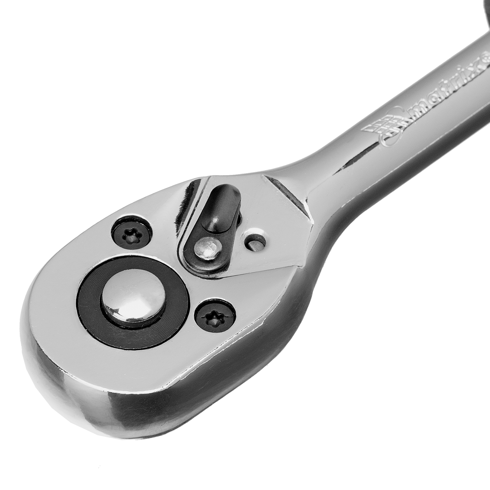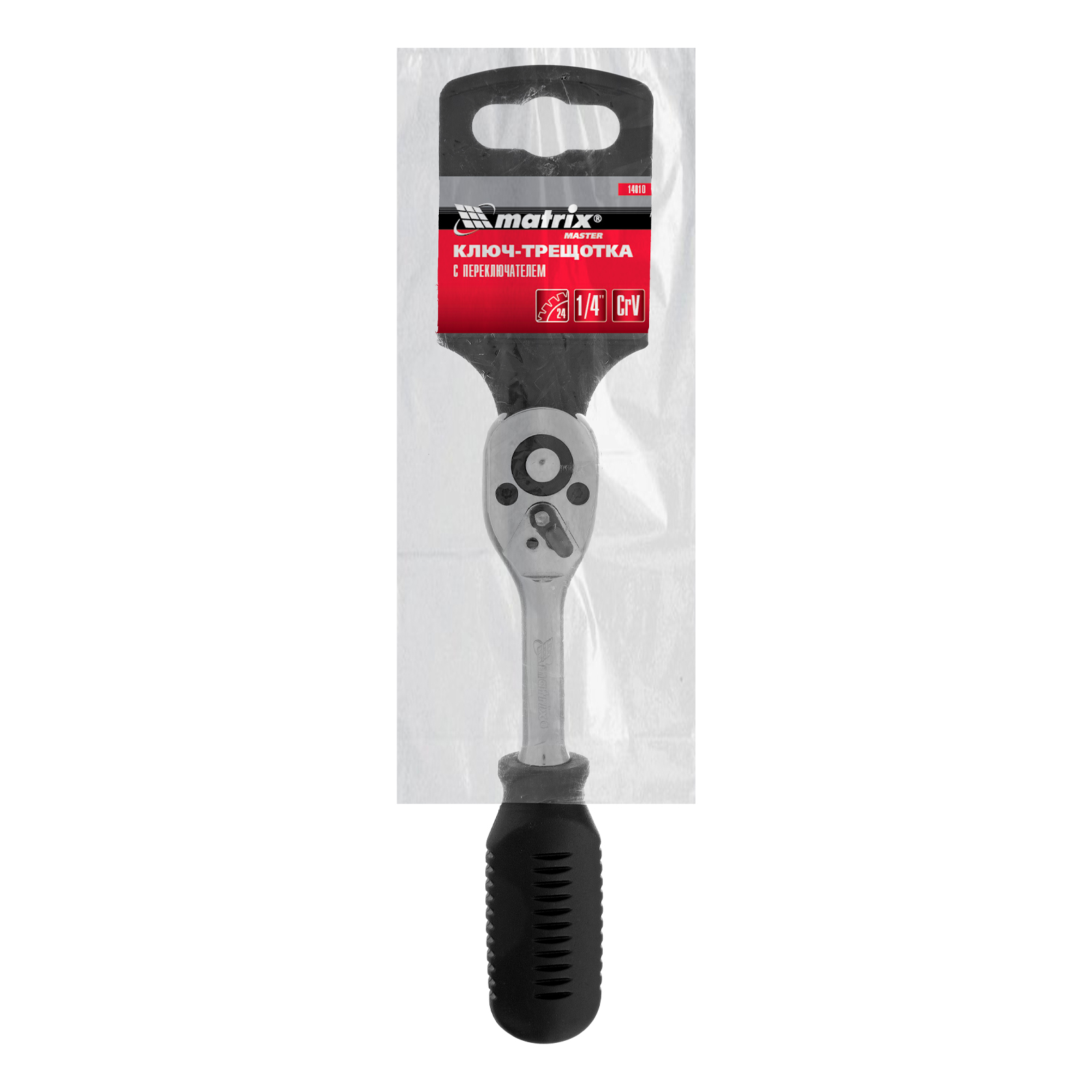 Хромированный ключ-трещотка Matrix 14010 с переключателем, из стали CrV, с присоединительным размером 1/4"", — ручной инструмент для монтажа и демонтажа резьбовых соединений. Совместим с торцевыми головками, имеющими посадочное гнездо соответствующего размера. Храповой механизм облегчает работу в труднодоступных местах. Инструмент применяется для ремонта техники, автомобилей, также используется в быту.ПреимуществаПрочность и устойчивость к нагрузкам — ключ выполнен из высококачественной хромованадиевой стали.Защита от разрушения — хромированная поверхность устойчива к образованию коррозии.Надежная фиксация торцевой головки — инструмент оснащен металлическим шариковым фиксатором.Реверс — можно менять направление вращения для быстрого переключения между задачами.Функция быстрого сброса — замена насадки занимает несколько секунд.Комфортная работа — рукоятка с рельефной поверхностью не выскальзывает из рук.