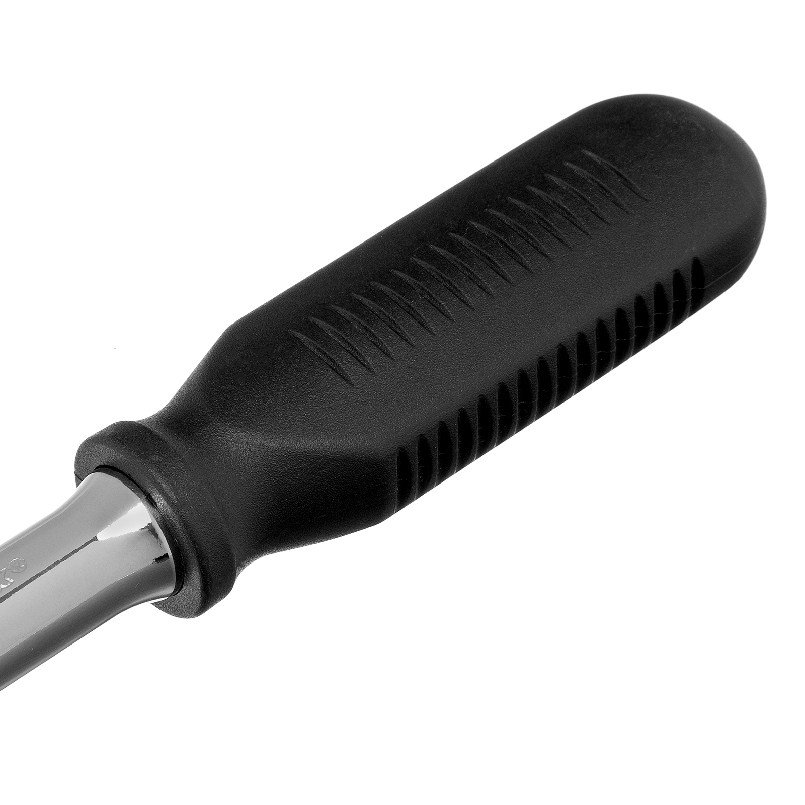 Хромированный ключ-трещотка Matrix 14013 с переключателем, из стали CrV, с присоединительным размером 3/8"", — ручной инструмент для монтажа и демонтажа резьбовых соединений. Совместим с торцевыми головками, имеющими посадочное гнездо соответствующего размера. Храповой механизм облегчает работу в труднодоступных местах. Инструмент применяется для ремонта техники, автомобилей, также используется в быту.ПреимуществаПрочность и устойчивость к нагрузкам — ключ выполнен из высококачественной хромованадиевой стали.Защита от разрушения — хромированная поверхность устойчива к образованию коррозии.Надежная фиксация торцевой головки — инструмент оснащен металлическим шариковым фиксатором.Реверс — можно менять направление вращения для быстрого переключения между задачами.Функция быстрого сброса — замена насадки занимает несколько секунд.Комфортная работа — рукоятка с рельефной поверхностью не выскальзывает из рук.
