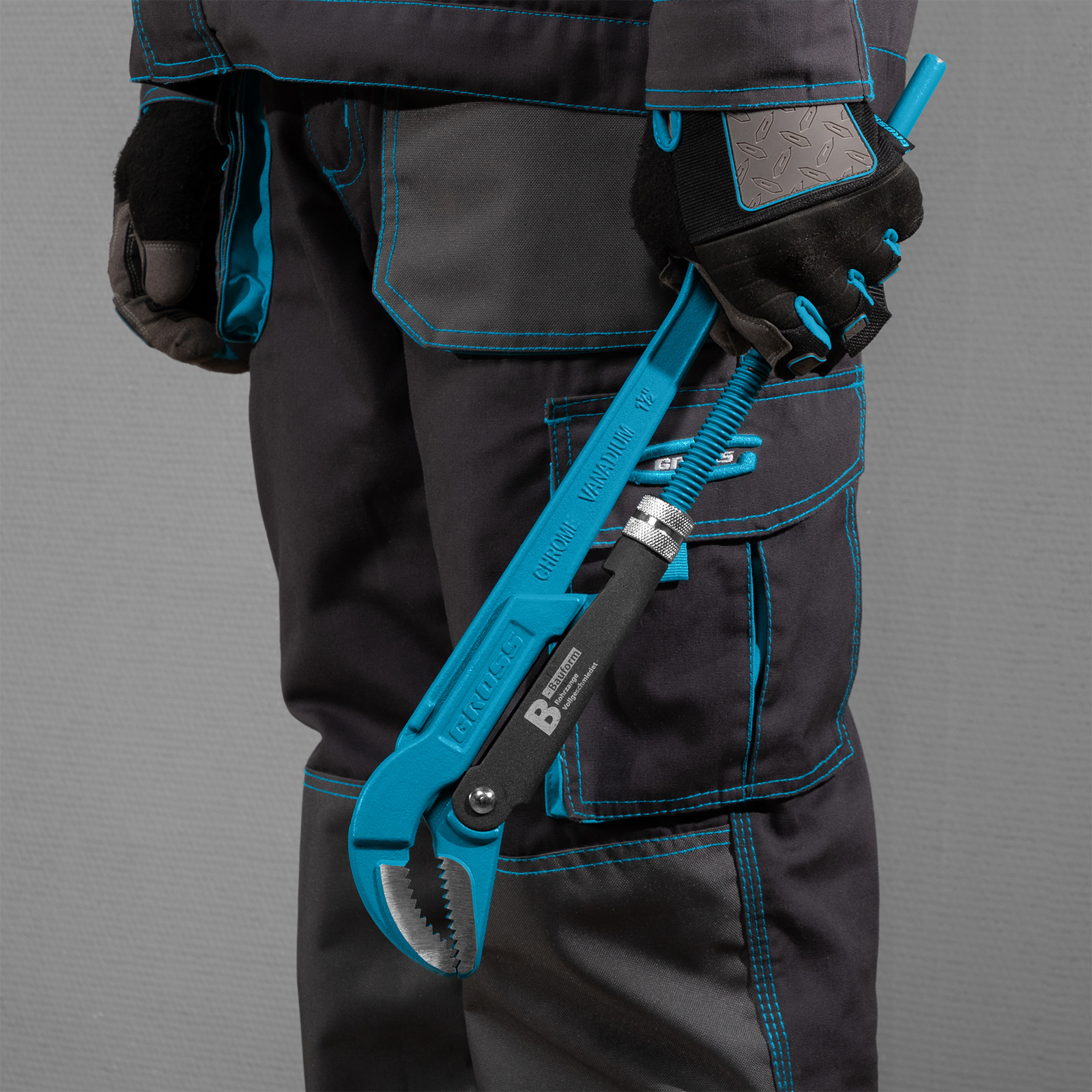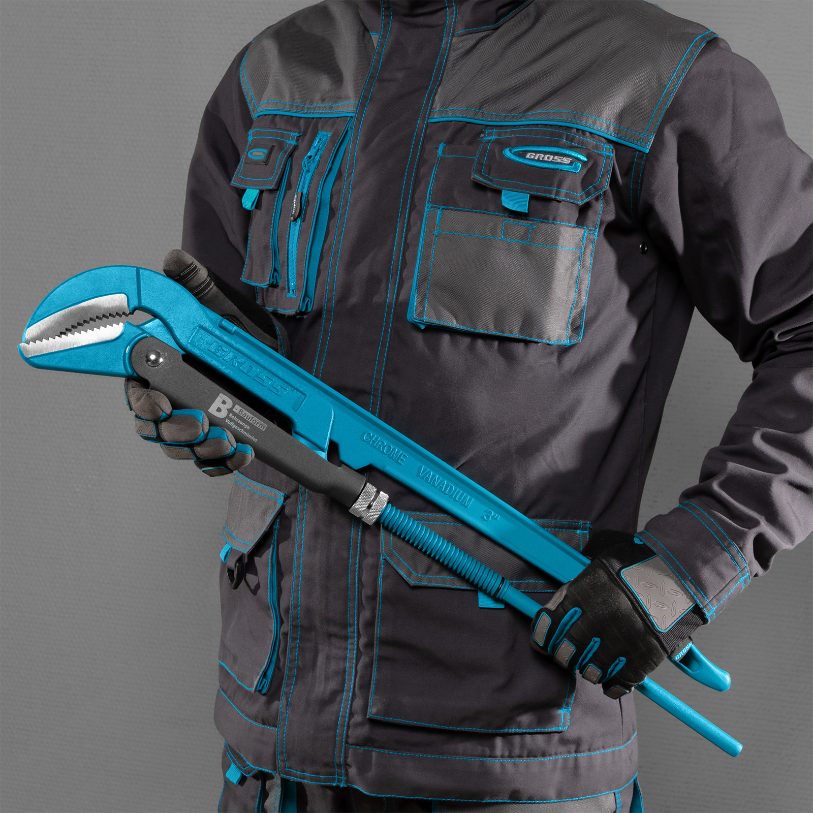 Цельнокованый трубный рычажный ключ Gross №2 15622 из стали CrV, тип «В», позволяет осуществлять захват и вращение труб и фитингов диаметром 1,5 дюйма. Он пригодится частным и профессиональным мастерам для проведения работ в быту или на производстве. Губки B-образной формы обеспечивают удобство работы с плоскими и объемными деталями даже труднодоступных местах. Ключ с рычажным механизмом требует минимальных усилий от пользователя, что облегчает работу.ПреимуществаГарантированное качество — цельнокованый корпус выполнен из прочной хромованадиевой стали.Высокая твердость 57-60 HRC — губки закалены высокочастотными токами, что позволяет использовать ключ в профессиональной сфере без риска поломки.Защита от коррозии — ключ покрыт порошковой эмалью.Надежность — гайка на регулировочном механизме зафиксирована стопорным кольцом.Самоблокируемый захват деталей — зубья на ключе наклонены в противоположную от направления вращения сторону.