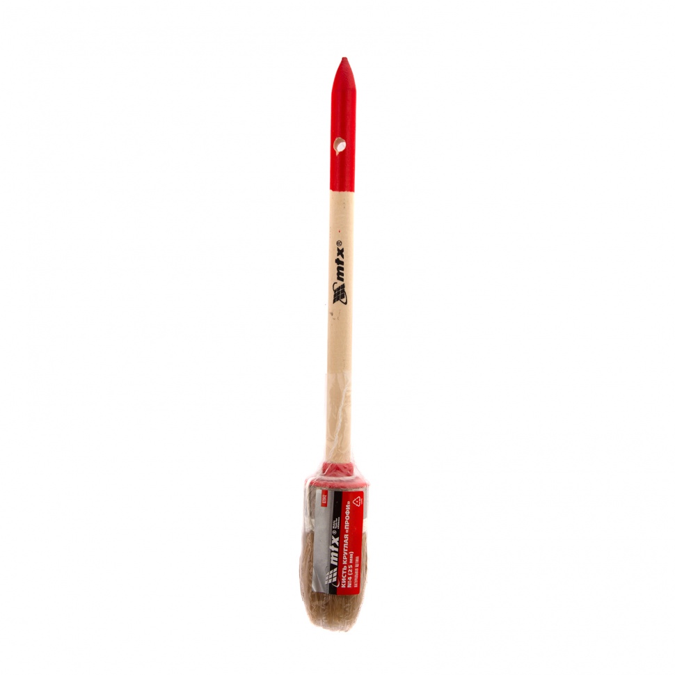 Круглая кисть MTX Профи №4 82042 диаметром 25 мм, с натуральной щетиной и деревянной ручкой, используется при проведении профессиональных малярных работ. Рабочая часть из натуральной свиной щетины с небольшим добавлением искусственной устойчива к агрессивным масляным краскам и ЛКМ на основе растворителей. Круглая кисть оптимально подходит для окрашивания узких и труднодоступных участков.ПреимуществаВысокое качество работ — щетина двойной выварки не содержит включений жира и мелких частиц грязи.Производительность — расщепленная на концах щетина обеспечивает высокую впитывающую способность и отдачу ЛКМ.Антикоррозийное покрытие — металлический бандаж не ржавеет при контакте с водой, поэтому кисть можно мыть.Комфорт и надежность — рукоятка выполнена из отборной древесины, отшлифована и покрыта защитным лаком.Удобное хранение — отверстие в рукоятке позволяет подвешивать кисть на крючок.