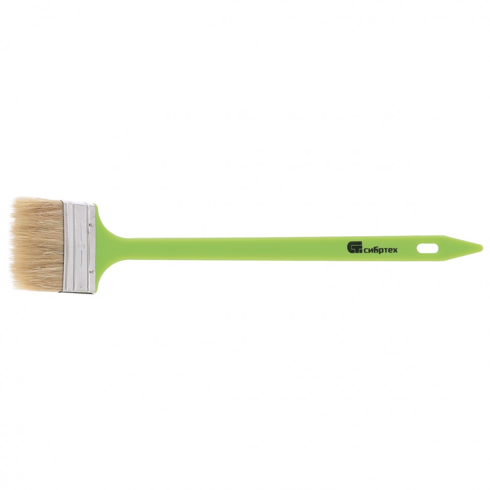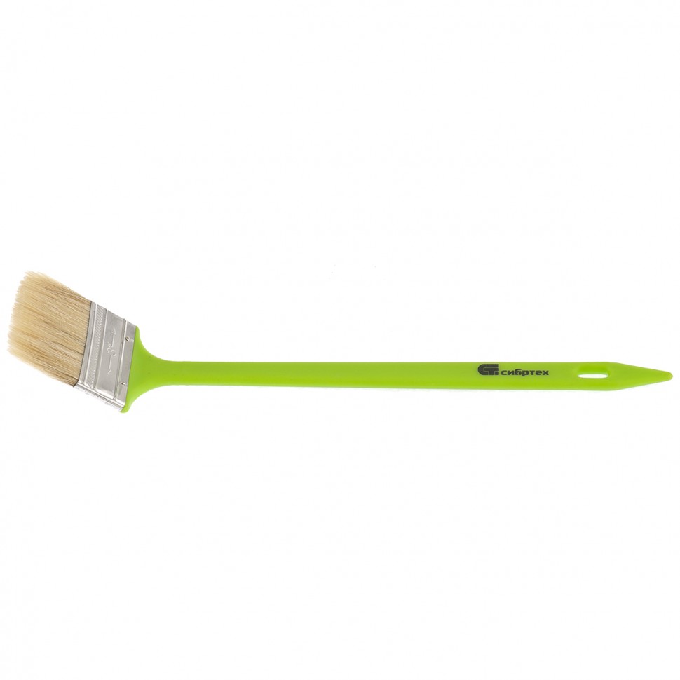 Радиаторная кисть Сибртех 83859 шириной 75 мм, с натуральной щетиной и пластиковой ручкой, позволяет окрашивать радиаторы, трубы, проволочные конструкции. Особенно удобна для покраски углов и стыков пола или потолка со стенами. Удлиненная ручка облегчает проведение малярных работ. Натуральная щетина с добавлением искусственного ворса устойчива к деформации и сохраняет упругость и краскообменные качества при использовании масляных красок и эмалей.ПреимуществаНатуральная светлая щетина двойной выварки обладает хорошей краскоотдачей и износоустойчивостью, обеспечивая равномерное распределение краски по поверхностиКлей, пластиковые клинья и металлический бандаж надежно скрепляют щетину, что исключает ее выпадение.Кисть набирает и удерживает большой объем краски благодаря расщепленным кончикам щетинок.Инструмент выдерживает многократное использование, т.к. металлический бандаж защищен от коррозии специальным покрытием.Кисть можно сушить и хранить в подвешенном положении благодаря отверстию в рукоятке.
