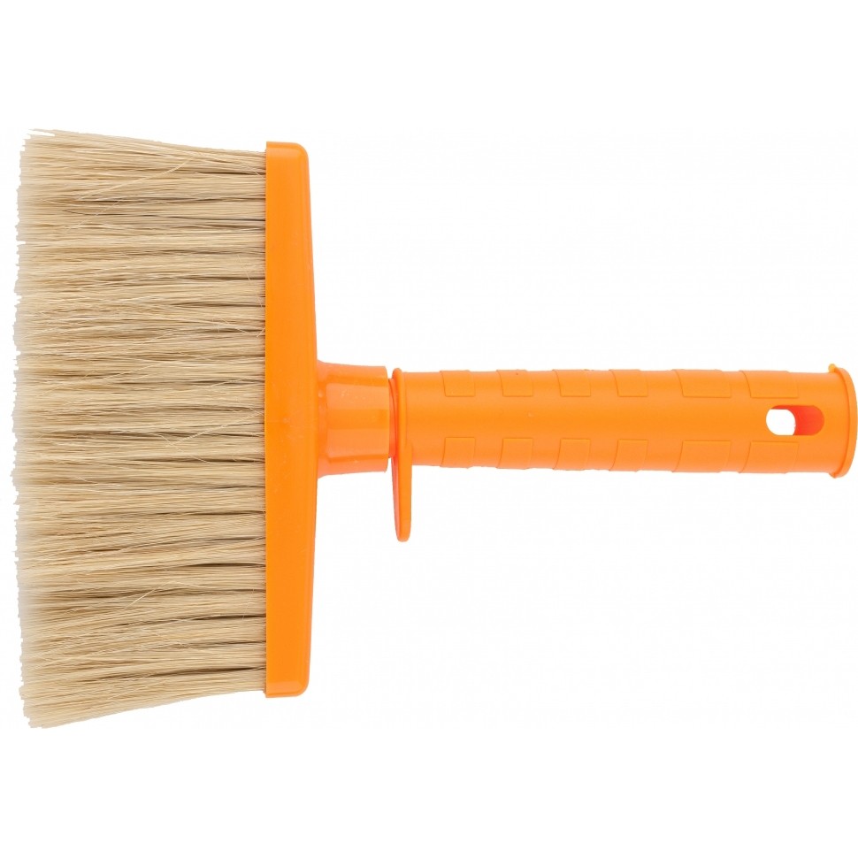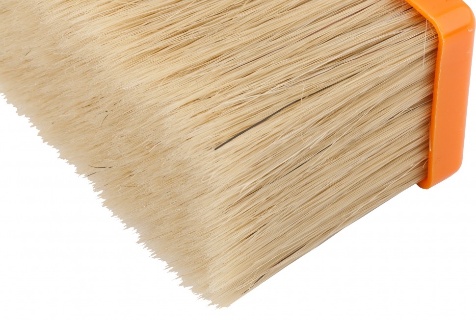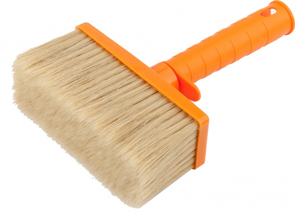 Плоская кисть Matrix Color Line «ФАСАД» 83398 шириной 140 мм и толщиной 50 мм предназначена для окрашивания грубых шероховатых поверхностей и обширных участков. Используется при проведении фасадных работ. Рабочая часть изготовлена из высококачественной натуральной щетины (показатель ТОПС не ниже 70%) с расщепленными кончиками, которая набирает и удерживает большой объем краски, — это обеспечивает высокую производительность кисти. Щетина устойчива к воздействию агрессивных сред, поэтому может использоваться с лакокрасочными материалами на основе растворителей.ПреимуществаРабочая часть кисти изготовлена из натуральной щетины двойной проварки, обеспечивающей отличное распределение краски по поверхности, за счет чего достигается высокое качество покраски.Щетина закреплена при помощи эпоксидного клея уникального состава, клиньев и бандажа, поэтому не выпадет при длительном контакте с водой или химическими веществами.Кисть прослужит долго, т.к. пластиковые клинья не разрушаются и предотвращают деформацию кисти при замачивании.Защитное покрытие предохраняет бандаж от образования коррозии.Удобная пластиковая ручка позволяет долго работать без усталости.Специальный выступ на рукоятке служит для фиксации инструмента на емкости с краской в т.ч. ванночке, обеспечивая комфорт во время работы.Кисть удобно хранить — ее можно подвесить при помощи отверстия на рукоятке.