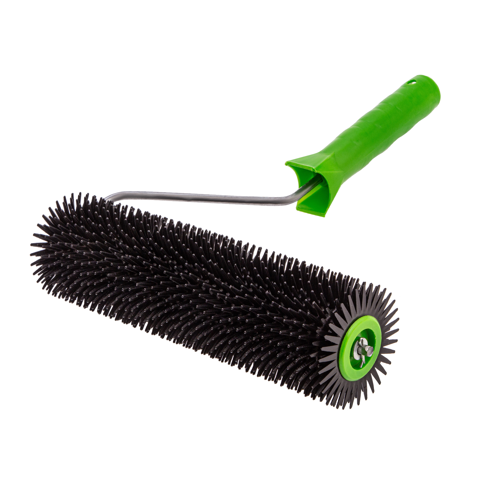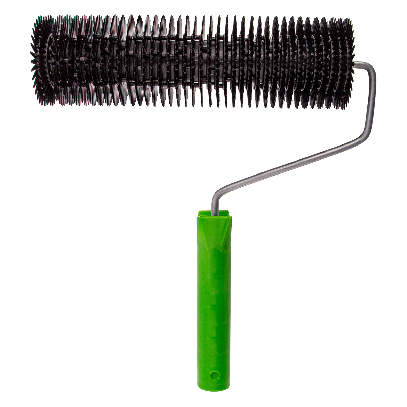 Валик игольчатый Сибртех 81110 с ручкой, длина 240 мм, применяется при монтаже наливных полов, а также при работе с другими вязкими материалами для удаления воздушных пузырей и полостей между рабочими слоями. Иголки длиной 14 мм подходят для покрытий небольшой толщины.ПреимуществаИглы за счет острой формы глубже проникают в раствор, что обеспечивает эффективность работы.Рукоятка подходит под удлиняющий стержень.Валик легко отмывается от раствора, поэтому уход за ним очень простой.