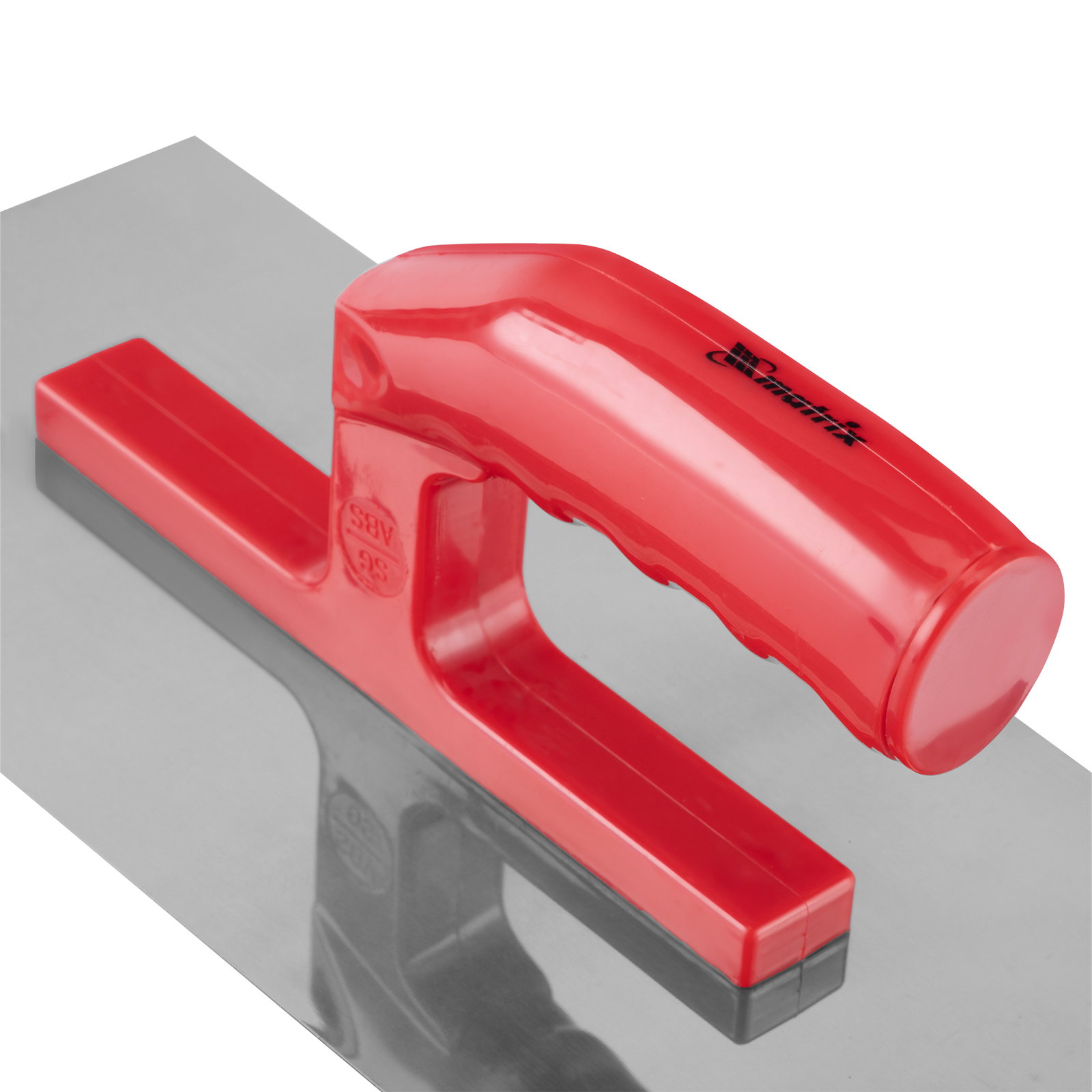 Гладилка из нержавеющей стали Matrix 86776 размером 280 x 130 мм, с зеркальной полировкой и пластмассовой ручкой, используется во время отделочных работ. Позволяет качественно выровнять штукатурный слой и равномерно нанести клеевой состав. Инструмент предназначен для бытового применения.ПреимуществаПрочность и коррозионная стойкость — рабочее полотно изготовлено из нержавеющей стали.Универсальность — материалы не прилипают к полированной поверхности гладилки, поэтому она подходит для нанесения даже быстрозастывающих смесей.Комфортная работа — эргономичная рукоятка с подпальцевыми выемками обеспечивает надежный хват.