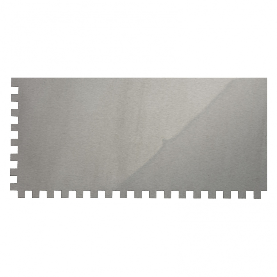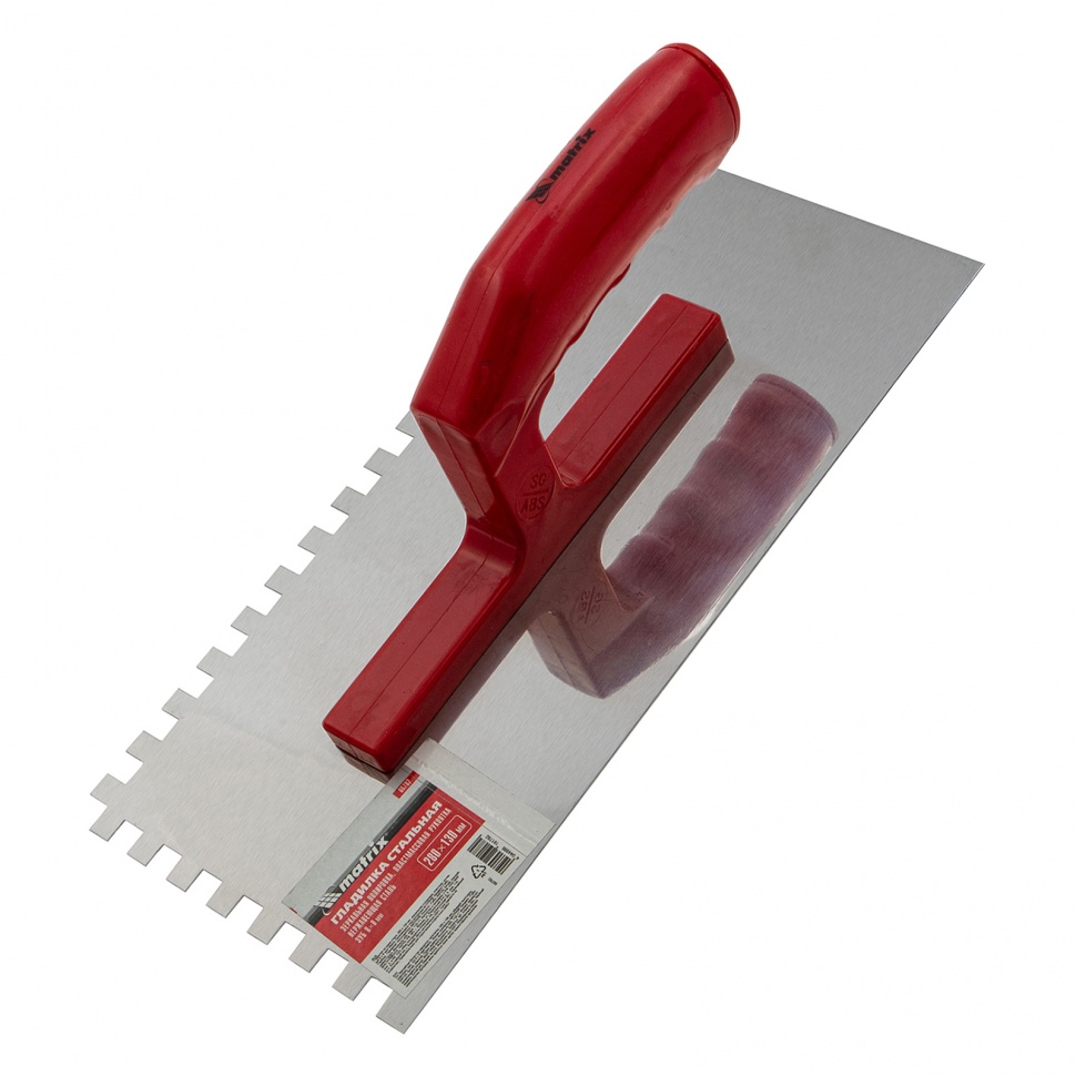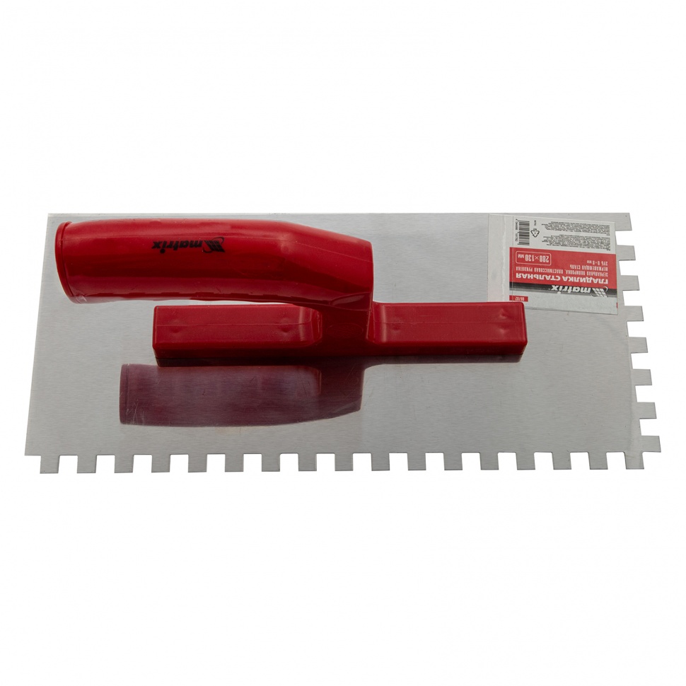 Гладилка Matrix 86782 размером 280 x 130 мм, из нержавеющей стали, с зубьями 8 x 8 мм, зеркальной полировкой и пластмассовой ручкой, пригодится любителям и частным мастерам при проведении ремонтных работ. Она позволяет равномерно наносить строительные растворы и плиточный клей на подготовленные под отделку поверхности.ПреимуществаДолговечность — гладилка из нержавеющей стали не боится коррозии, обладает оптимальным соотношением упругости и прочности.Высокое качество работ — отполированное полотно обеспечивает максимально равномерное распределение растворов, в том числе быстрозастывающих.Комфортная эксплуатация — эргономичная пластиковая ручка удобно лежит в руке, что позволяет долго работать без усталости.