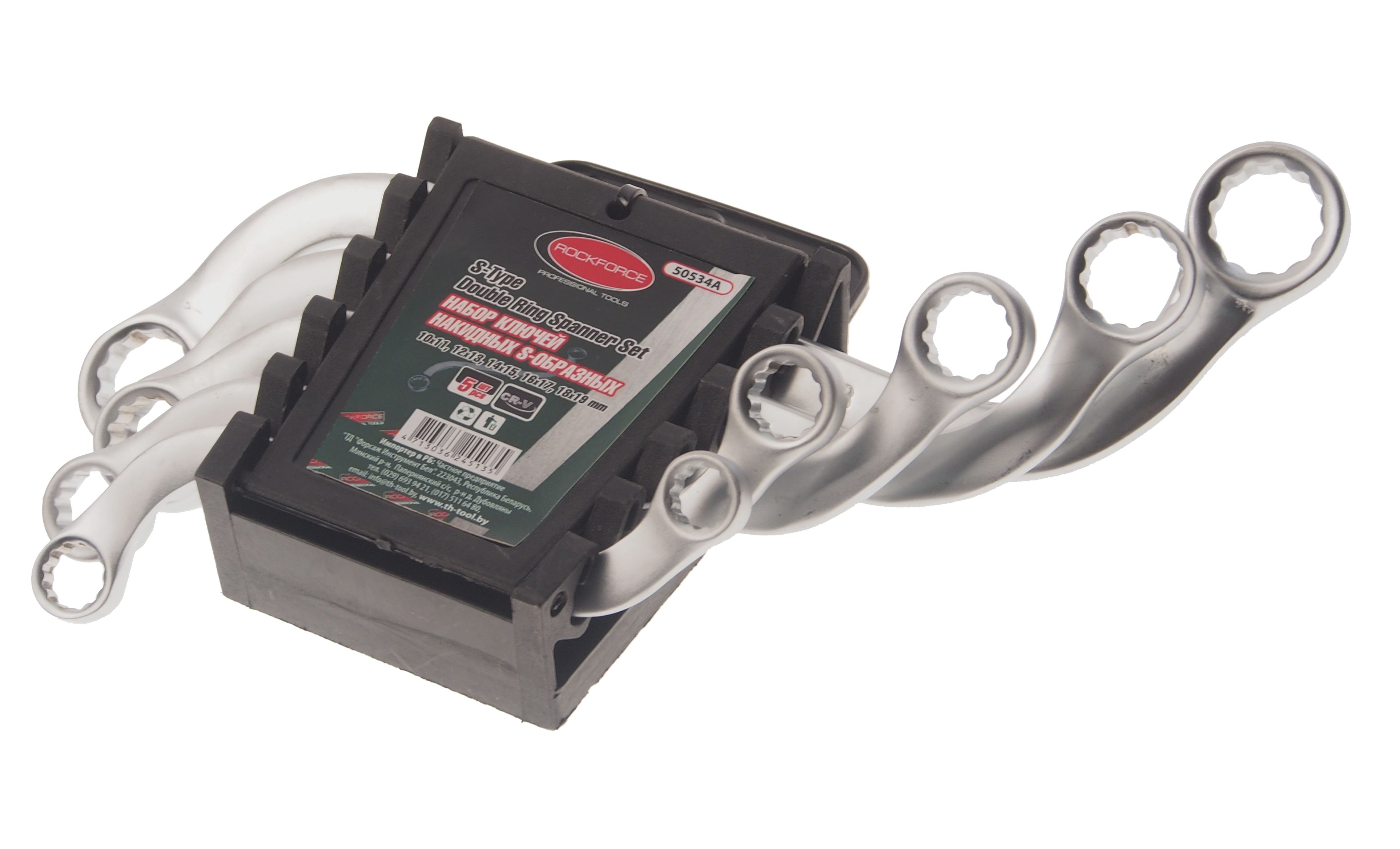 Набор ключей RockForce накидных S-образных,5 предметов в наборе (10×11, 12×13, 14×15, 16×17, 18×19мм), в пластиковом держателе Вставки применяются в ремонтных, слесарных и других работ с различными приводами для крепежа. Каждый набор подходит для определенного профиля крепежа. Благодаря составу, инструмент выдерживает высокие нагрузки, а так устойчив к механическому и химическому воздействию. Наборы поставляются в удобных кейсах или ложементах.