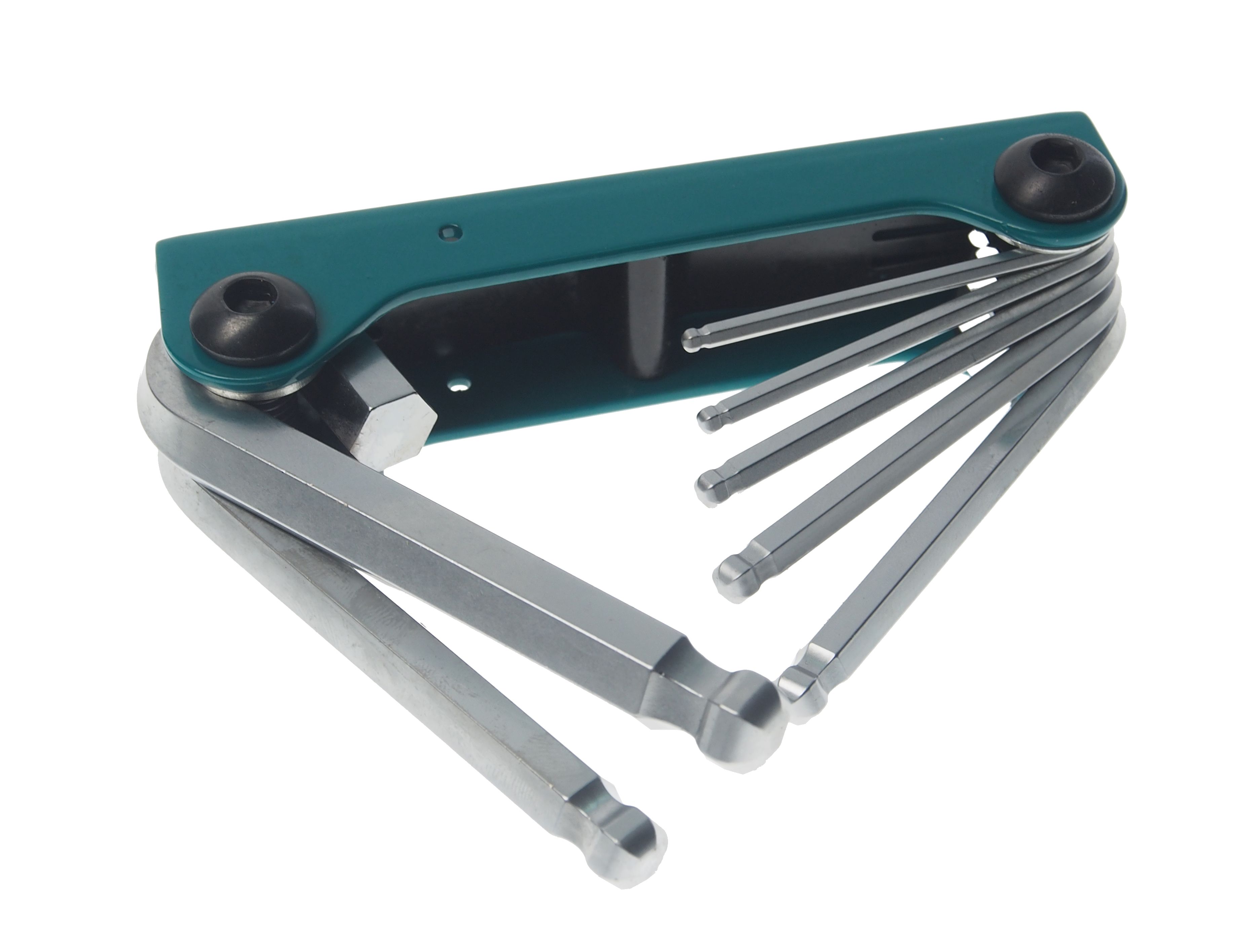 Набор ключей RockForce 6-гранных с шаром складной, 7 предметов в наборе(2.5, 3- 6, 8, 10мм). Практичный комплект инструмента, для работы с резьбовыми соединениями. Шестигранные ключи обеспечивают комфортное применение и высокий крутящий момент. Ключи изготовлены их хром-ванадиевой стали, так же все ключи проходят процесс «холодной» прокатки для повышения твердости стали.