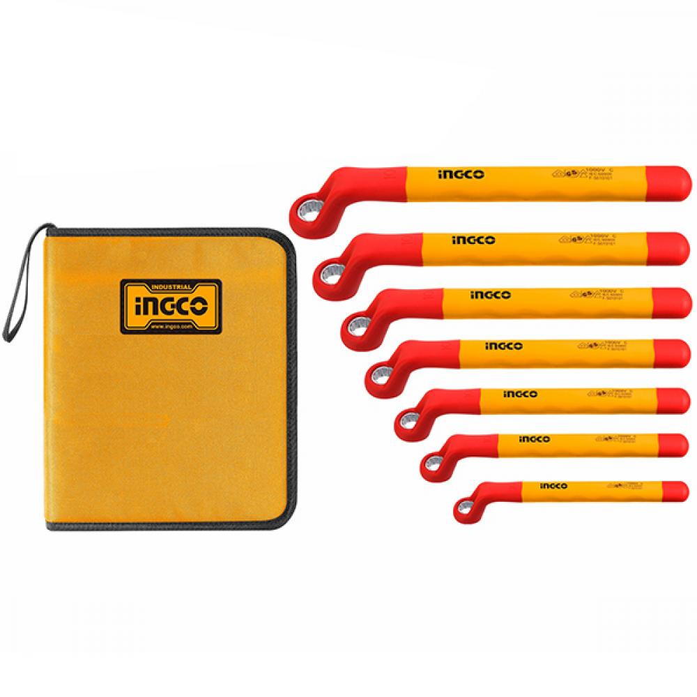 Набор изолированных накидных односторонних ключей 7 шт. 1000В INGCO HKISPA0702 предназначен для электромонтажных работ под напряжением до 1000 В.